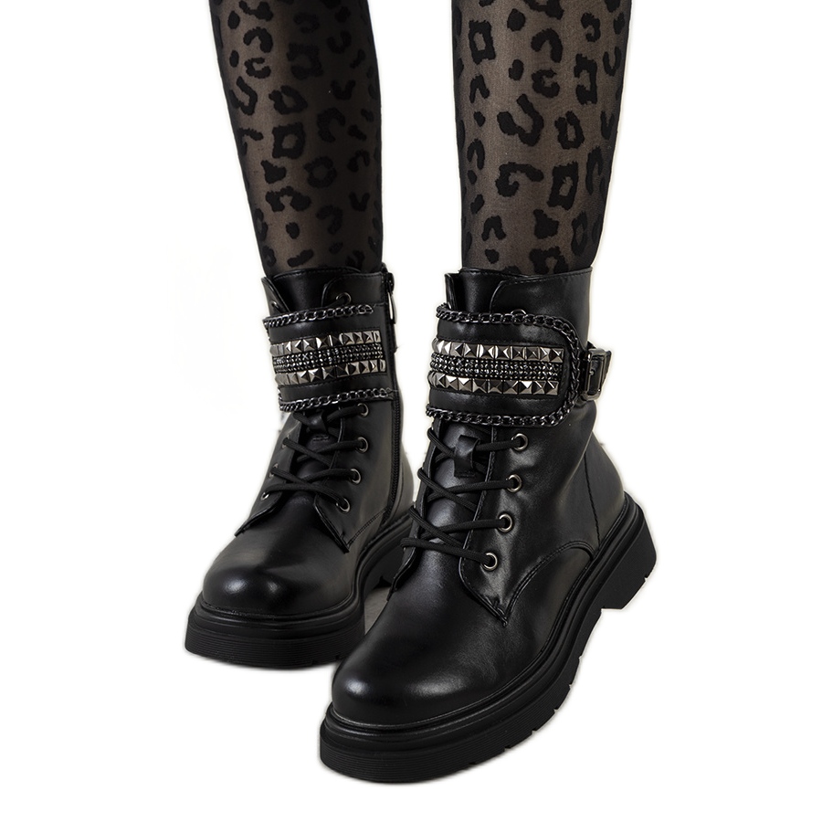 Avenida ankelstövlar utmärks av en rund tå och en bred 4 cm hög plattform, vilket ger dem en unik karaktär. Dessutom är fashionabla dubbar en intressant accent som kommer att betona din individualitet. Blixtlåset och snörning är praktiska lösningar som gör dem lättare att ta på och passa på foten.