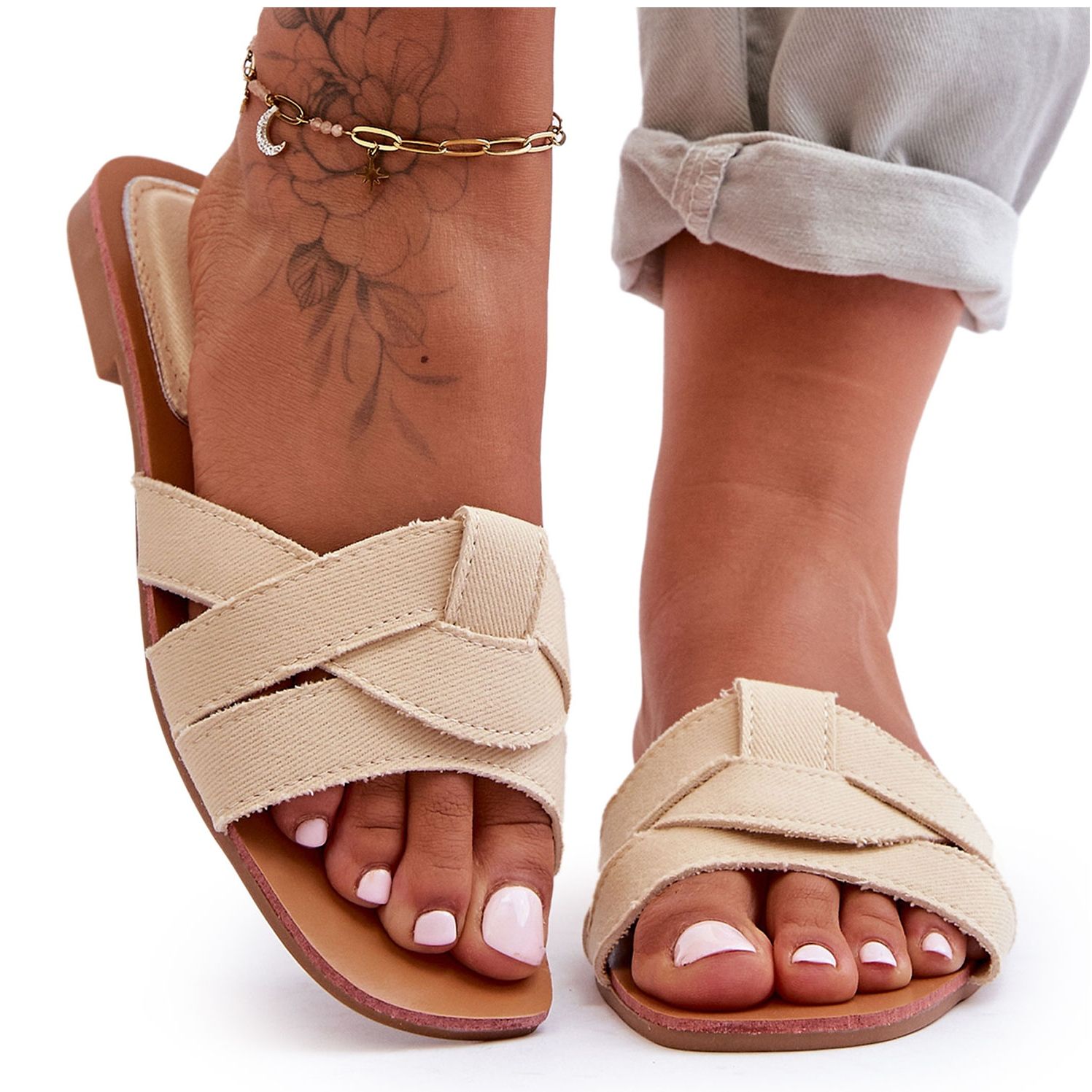 Information: Aversa Beige tygtofflor för kvinnor