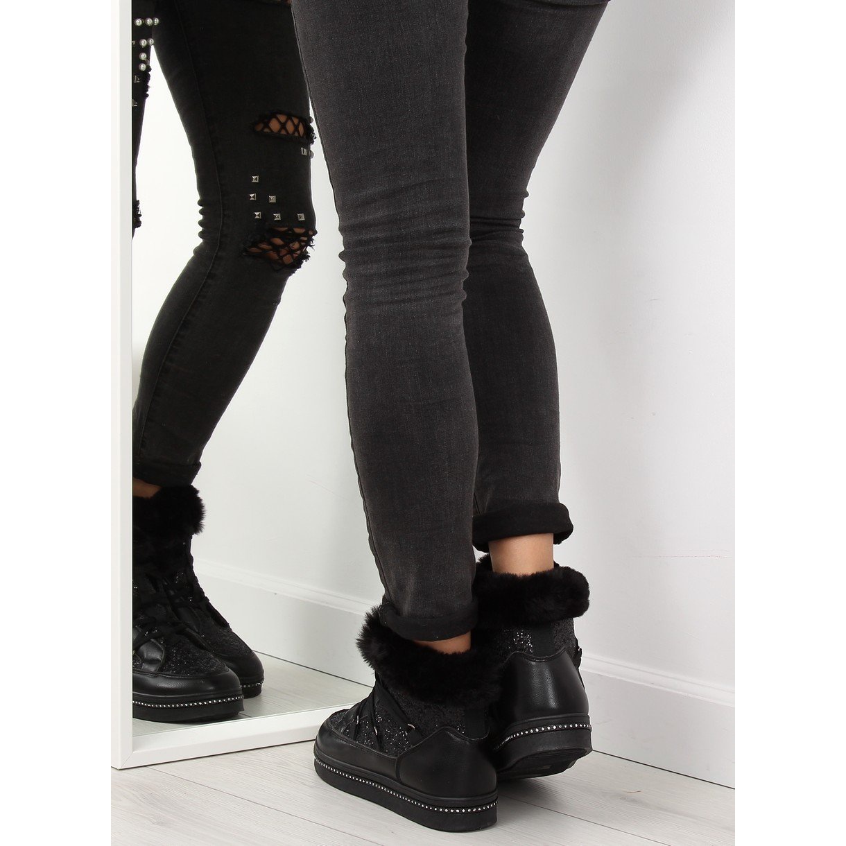 Upptäck vinterelegans och komfort med Moon AX05 svarta snöstövlar! Dessa unika ankelboots för kvinnor kombinerar moderiktig design med funktionalitet. Sulan, dekorerad med små zirkoner, ger dem en unik glans, och glitterfinishen kommer att göra dig märkbar i alla miljöer.