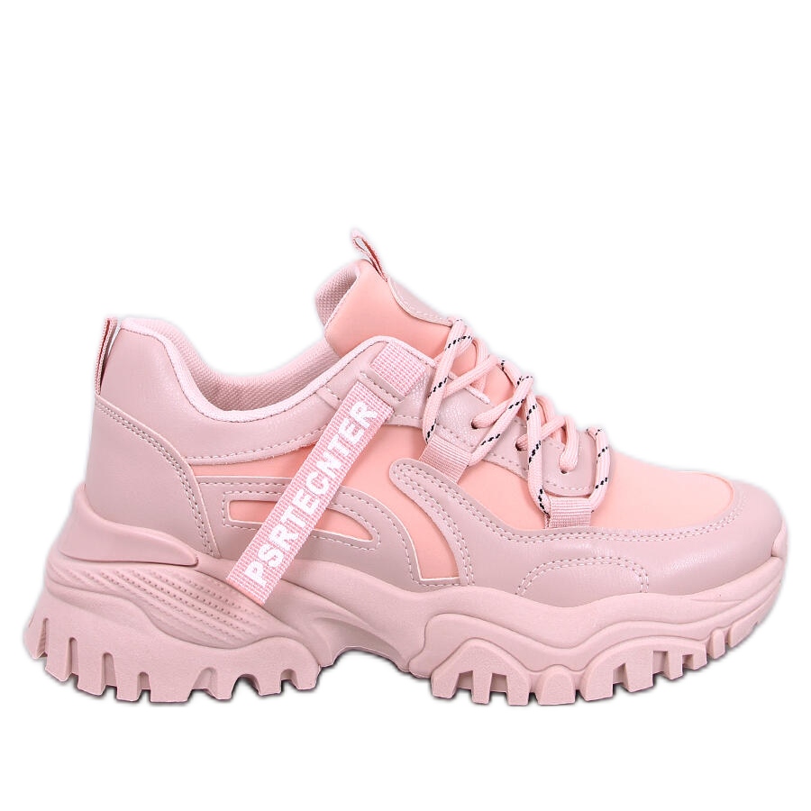 Sneakers bains rosa kännetecknas av ett smidigt mönster i en modern nyans av rosa, vilket gör dem till ett härligt element i varje stilisering. En rund näsa och snörd lås ger dem en sportig karaktär, samtidigt som man säkerställer rätt passform.