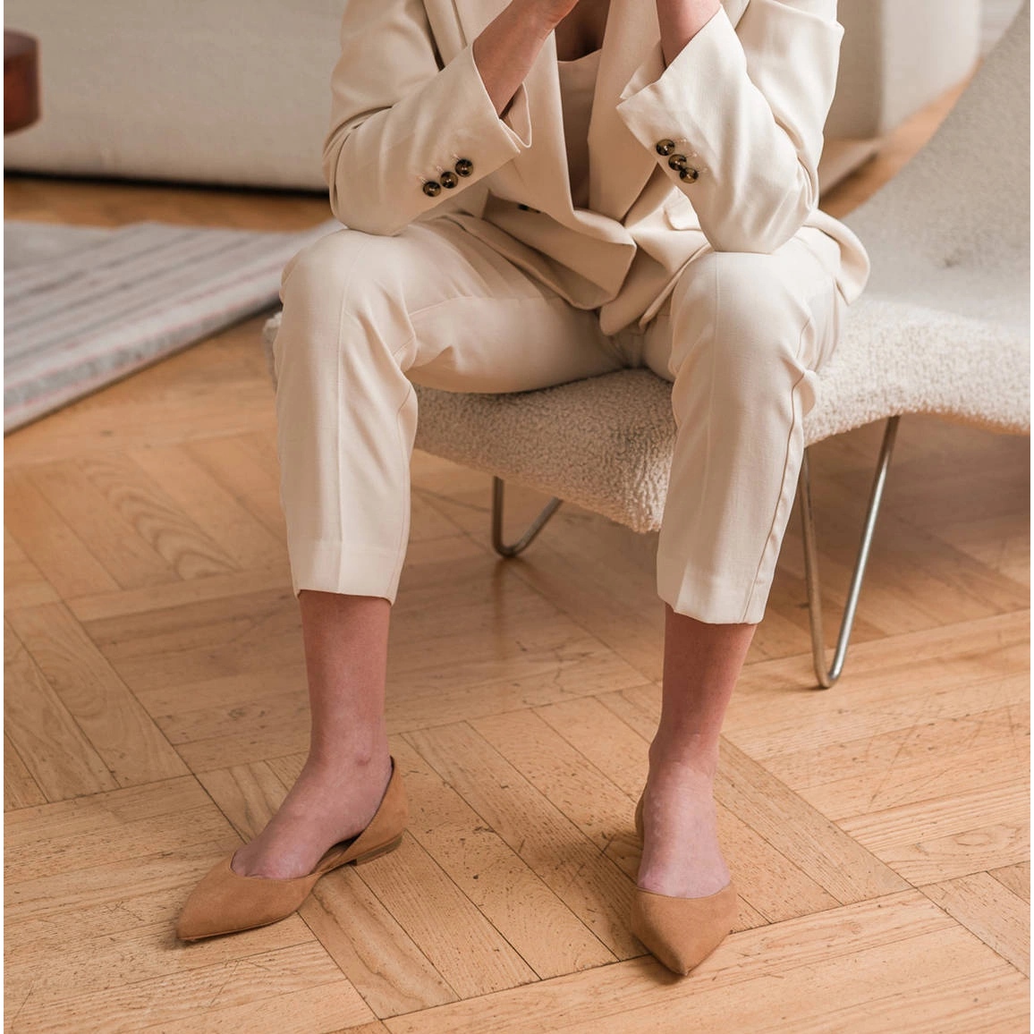 Insidan av skorna är fodrad med naturligt läder, vilket garanterar komfort när de bärs, och den lätta sulan av högkvalitativt material gör varje ögonblick i dessa balettlägenheter till ett nöje. Klackhöjden på endast 1 cm garanterar stabilitet och lyfter samtidigt försiktigt figuren.