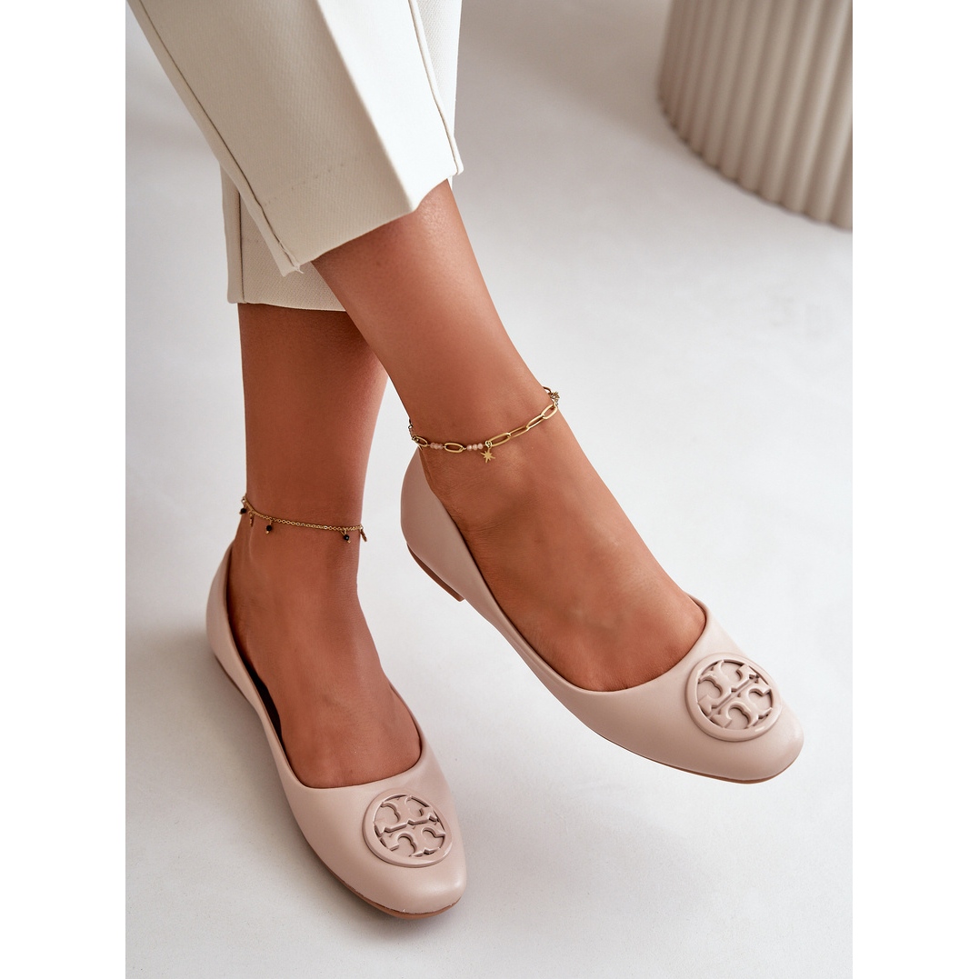 Detaljer: Ballerinaskor för kvinnor med beige Rhodike Eco-läderdekoration