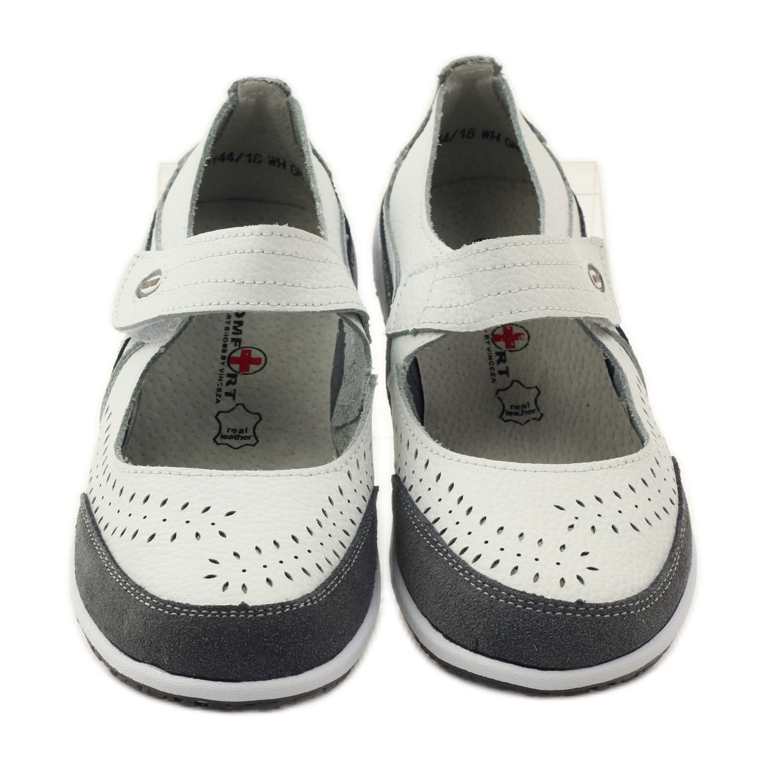 Upptäck exceptionell komfort och elegans med Vinceza dambalettlägenheter i läder i vitt och grått. DP144-modellen är det perfekta valet för våren och sommaren eftersom den kombinerar stil, komfort och kvalitet på utförande.