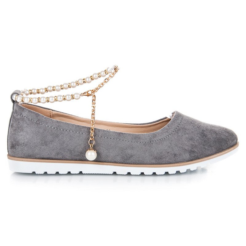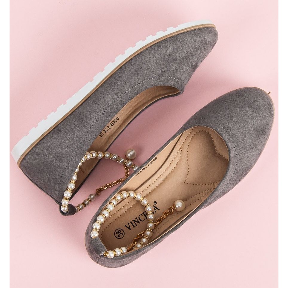 Vinceza Ballerinor i mocka med vinceza-pärlor grå