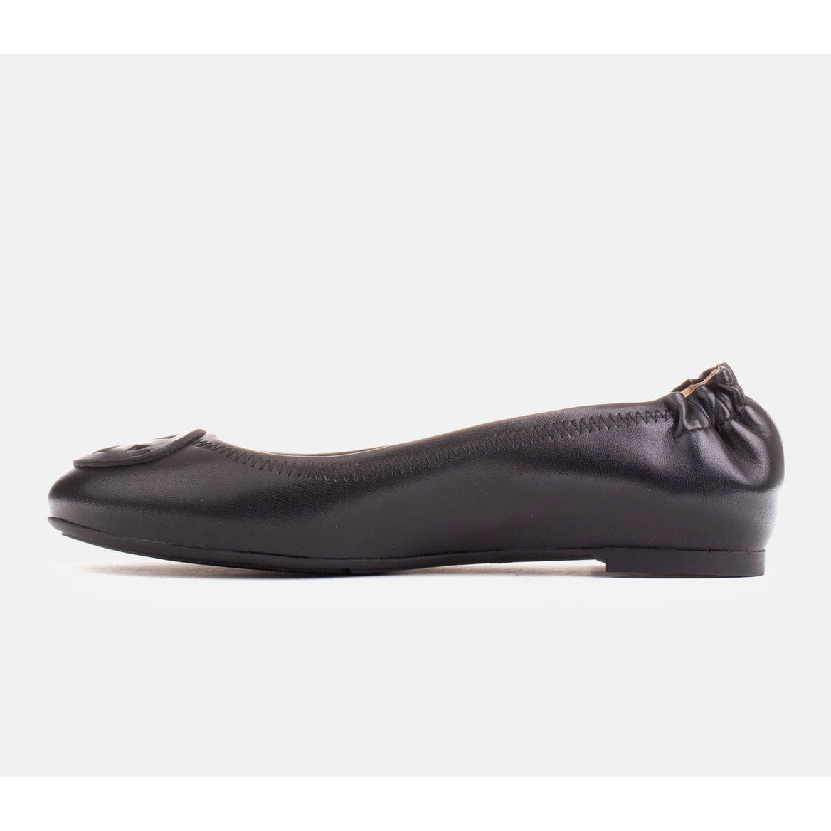 Den minimalistiska designen med en rund tå och en platt läderdekor ger ballerinorna en unik karaktär. Den enkla men läckra looken gör dessa skor absolut tidlösa. En platt klack med en höjd på endast 1 cm framhäver modellens bekväma egenskaper, och den exceptionella lättheten hos skorna - endast 0,5 kg med förpackning - är en ytterligare fördel.