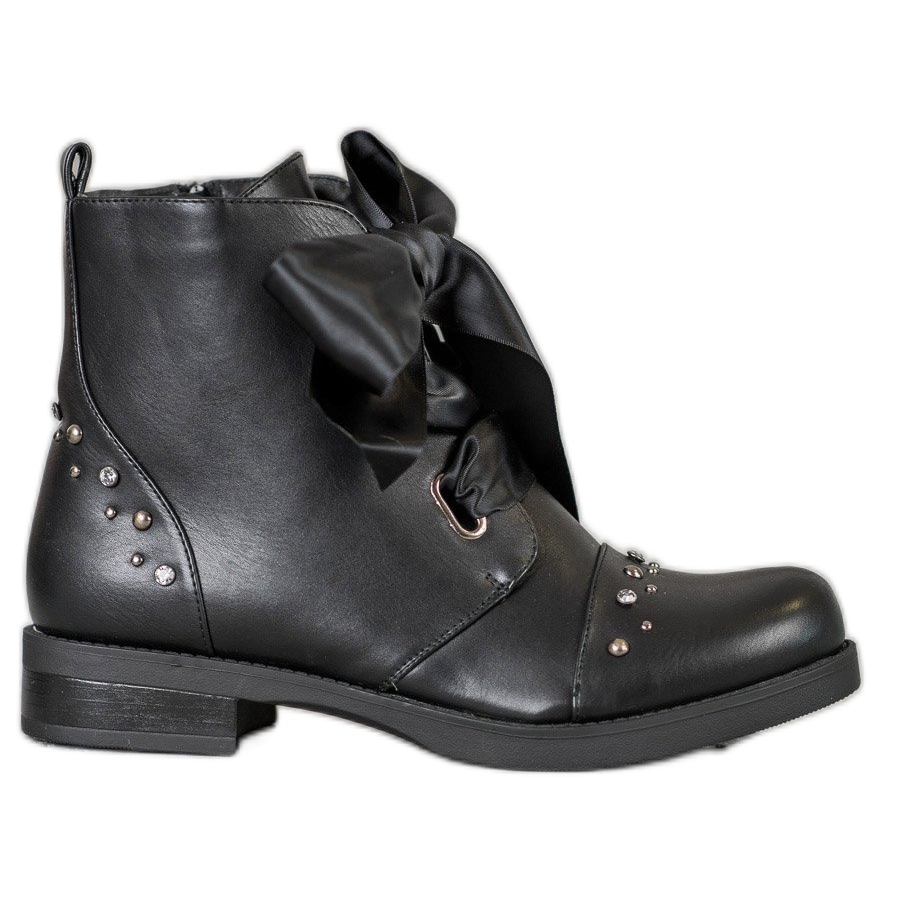 Dessutom är stövlarna dekorerade med strass, vilket ger dem en moderiktig, avslappnad karaktär, perfekt för vardagsutflykter. Snörningen och dragkedjan gör det enkelt att ta av och på skorna, och den solida sulan med slitbana i plast säkerställer stabilitet och grepp på olika ytor.