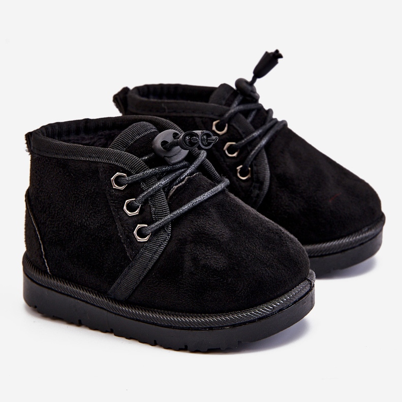 Barn spets -up snöstövlar isolerade med päls - jägare (svart)