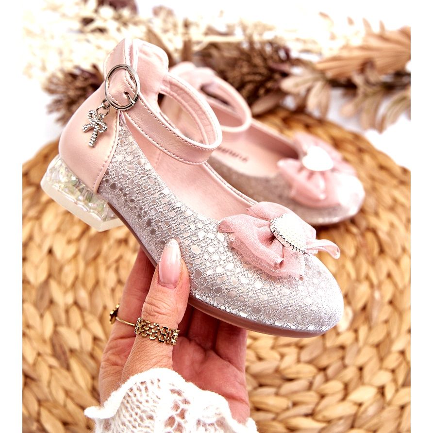 Ett av de element som skiljer dessa ballerinaskor från andra barnskor är en dekorativ rosett på framsidan, dekorerad med ett hjärta, vilket ger charm och flickaktig charm till varje styling. Ett bälte med ett dekorativt spänne och rundade tår är ytterligare detaljer som samverkar till en harmonisk helhet och skapar en unik design. Dessutom gör kardborrebandet det lättare för barnet att byta skor på egen hand, vilket stöder hans strävan efter självständighet.