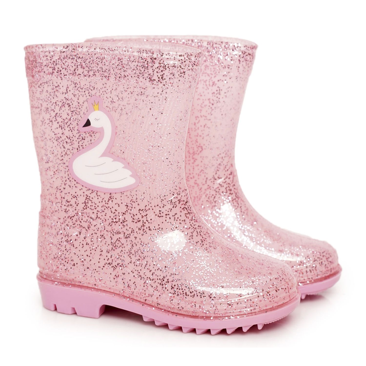 Vi inbjuder dig att upptäcka charmiga glitterstövlar för barn med en svan i rosa och silver! Dessa unika regnstövlar är det perfekta valet för regniga dagar och ger både komfort och stil.