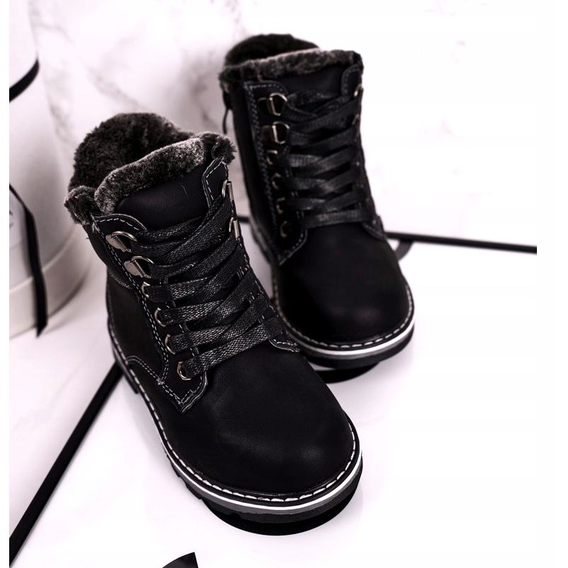 Sneakersna har en styv häl, som dessutom stabiliserar barnets fot, vilket garanterar säkerhet vid varje steg. Dragkedjan gör det lättare att ta av och på skorna, vilket kommer att uppskattas av både barn och föräldrar. Lätt att använda och snygga, dessa svarta stövlar kommer att vara det perfekta komplementet till alla barnkläder.