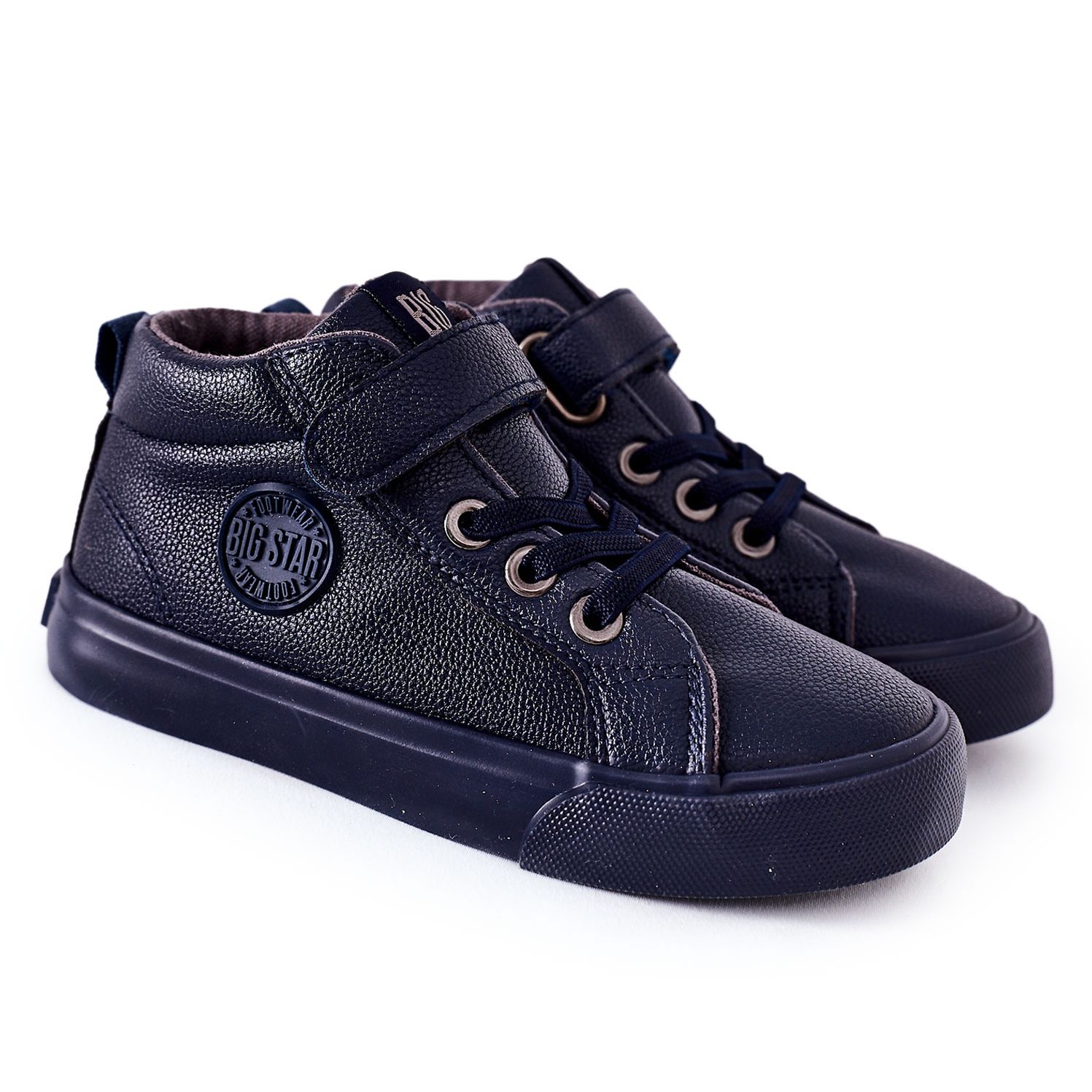 Big Star EE374003 högtoppade sneakers för barn i marinblått är det perfekta valet för aktiva barn. Designade av det välkända polska märket BIG STAR, de kombinerar stil med komfort och hållbarhet. Skorna är gjorda av högkvalitativt eko-läder vilket gör dem lätta och lätta att rengöra.