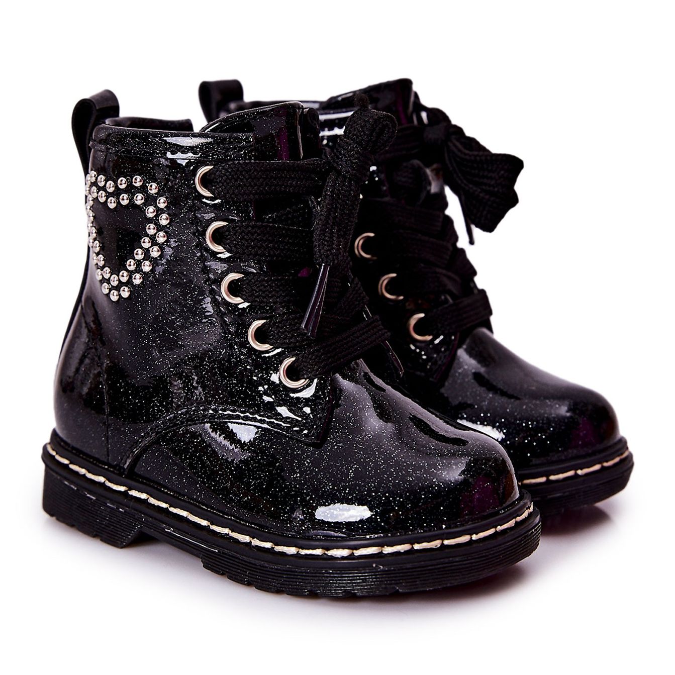 Upptäck unika barnpatent WT1 stövletter i glänsande svart! Dessa snygga och eleganta ankelboots är det perfekta valet för små modeälskare som vill sätta lite gnistan på sin look. Den fenomenala effekten av lackläder och ett charmigt hjärta gjord av dubbar kommer att få varje tjej att bli kär i dem vid första ögonkastet.