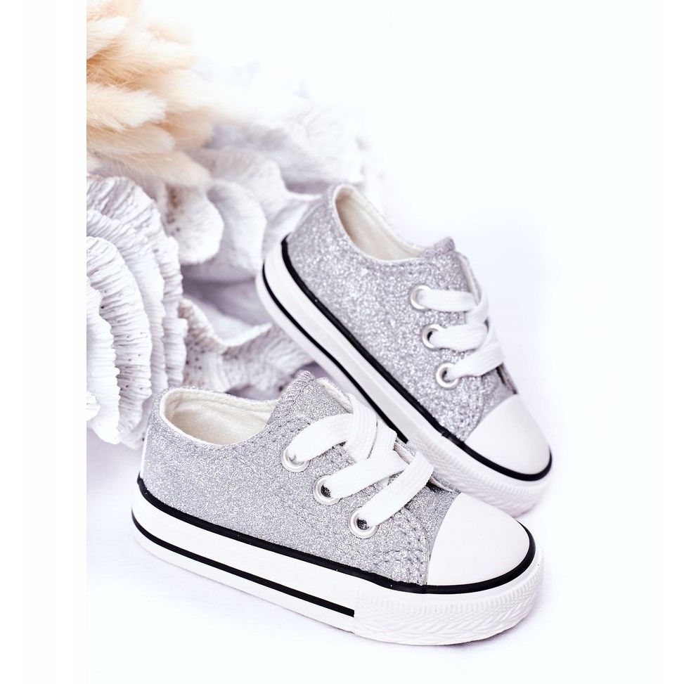 Detaljer: Barns glitter silver sneakers 888-1b