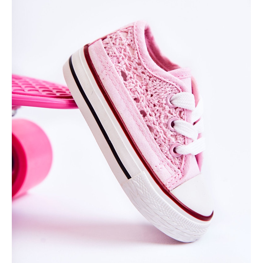 Detaljer: Barns sneakers med spets vit Roly-Poly rosa