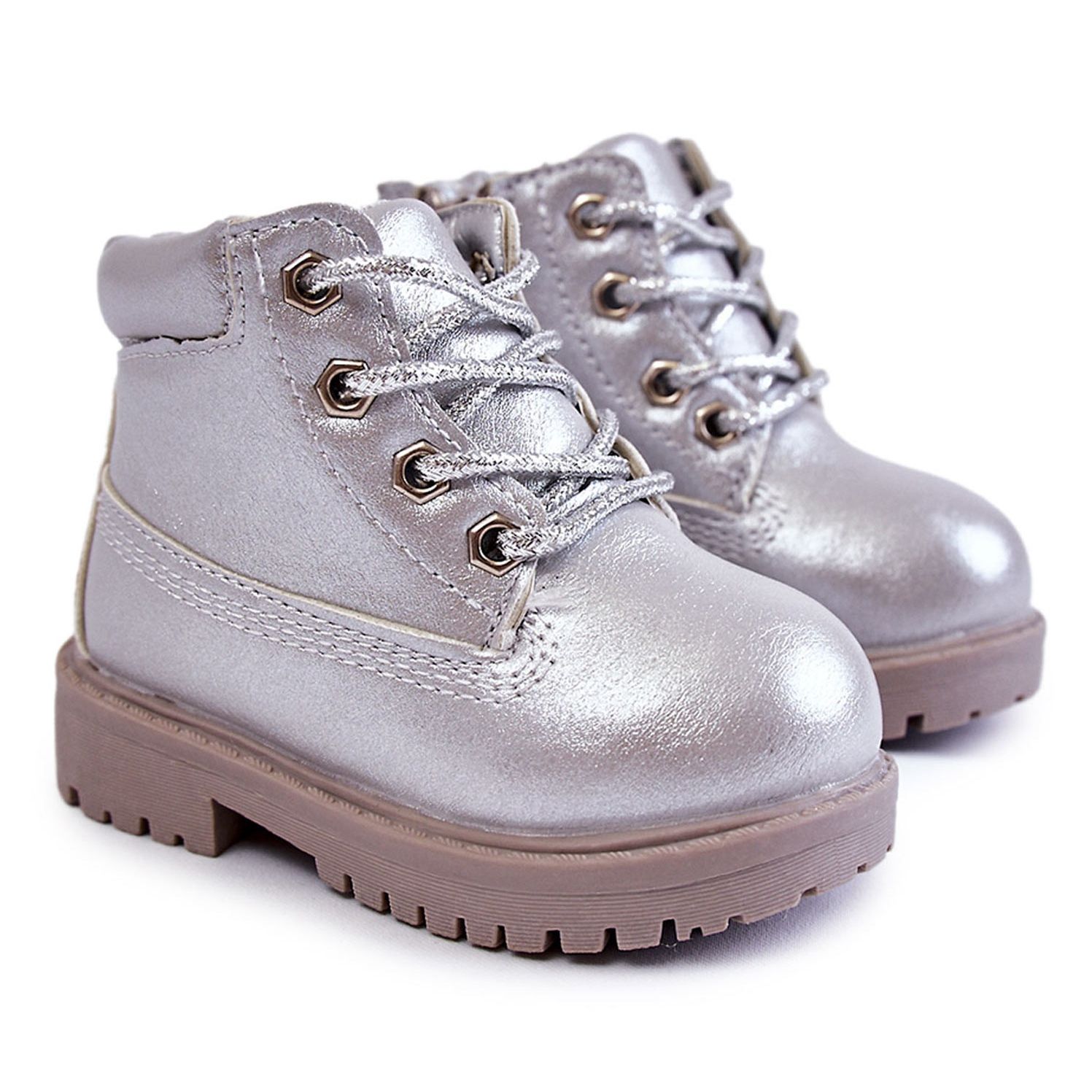 Snygga och praktiska stövlar för flickor som kommer att fungera under kallare månader. Den yttre beläggningen av ekologiskt läder i en elegant silverfärg tillför karaktär och samtidigt är lätt att rengöra. Klassisk snörning låter dig perfekt matcha den övre till foten, medan skjutreglaget sydd på sidan underlättar snabbt insättning och borttagning.