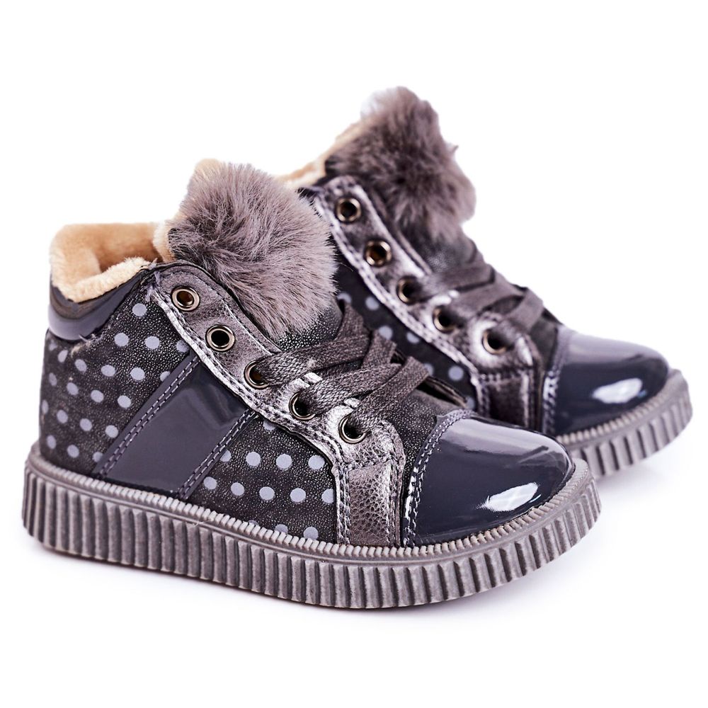 **Linshi isolerade ankelboots sneakers för barn med prickiga grå Anastasia silver**
