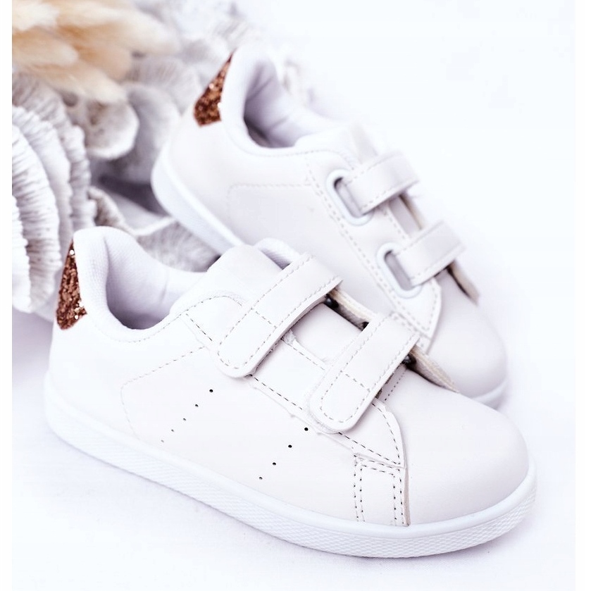 Sneakers finns i den ursprungliga förpackningen och är ett utmärkt val för flickor som värderar komfort och fashionabla design. Vi uppmuntrar dig att bekanta dig med hela vår samling barnskor för att hitta de perfekta modellerna för varje tillfälle. Välj våra vita och gyllene sneakers och gör varje dag speciell!