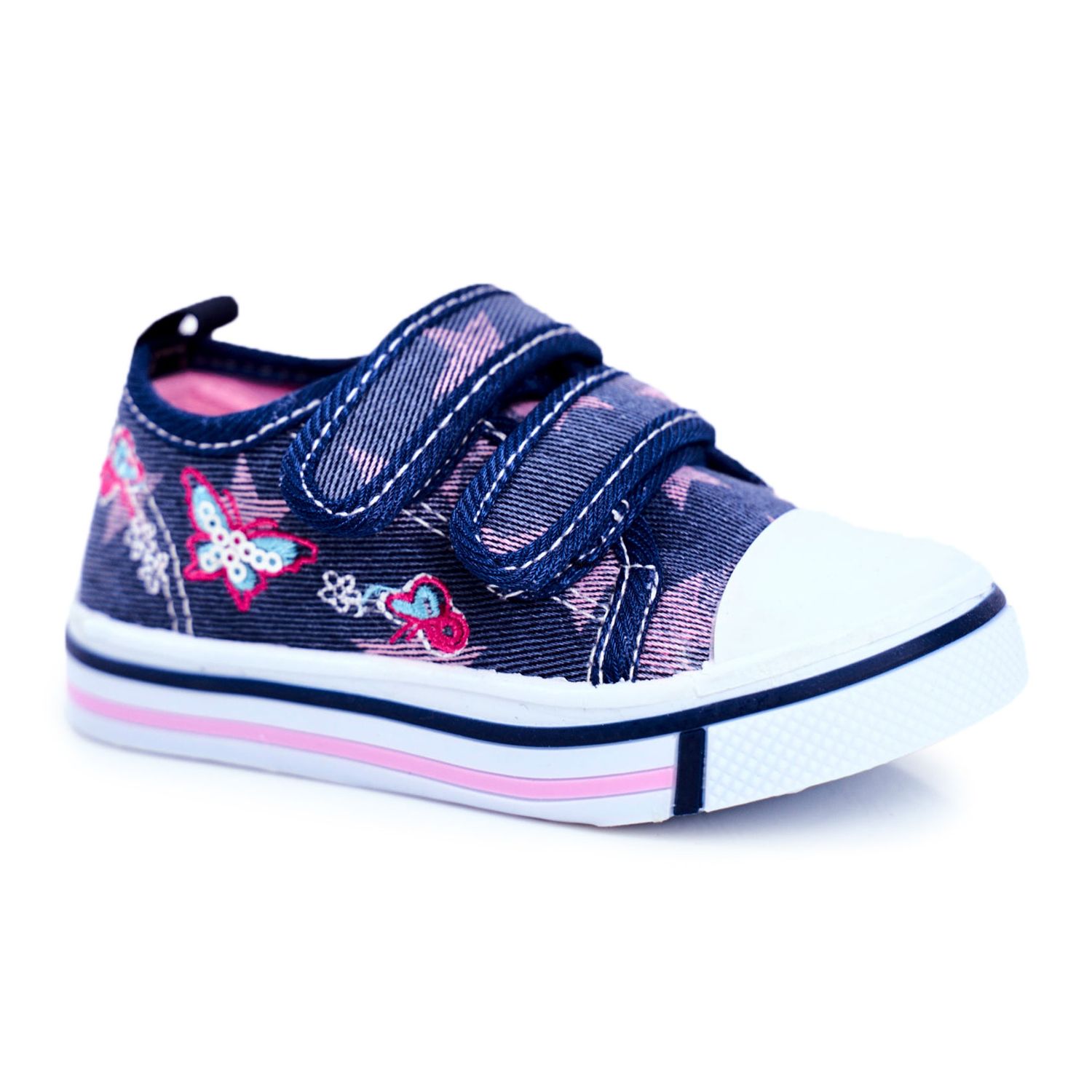 **Le Scarpe Sneakers med kardborreband för barn Marinblå Junalo Rosa**