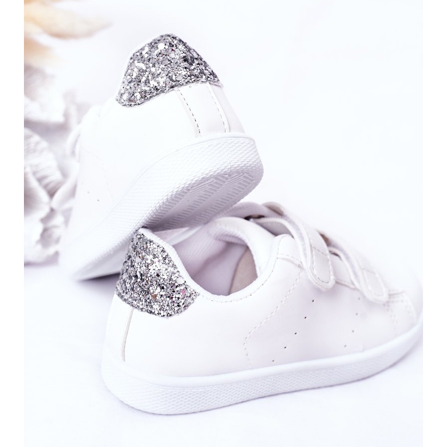 Detaljer: Barnskor med kardborreband Vit och Silver Gullig tjej