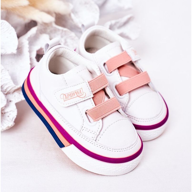 Detaljer: Apawwa Barnskor med ribbad vit och rosa Baxter