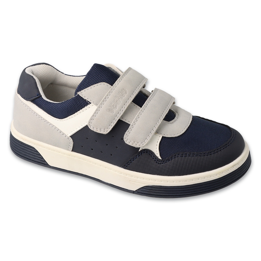 Model 514Y027 kännetecknas av en praktisk kardborrfästning, vilket underlättar den oberoende installationen och borttagandet av skor av barn. Den marinblå skuggan som är trasig med blå och beige detaljer gör att skorna blandas perfekt med olika dagliga stiliseringar, både i skolan och när man spelar utomhus.