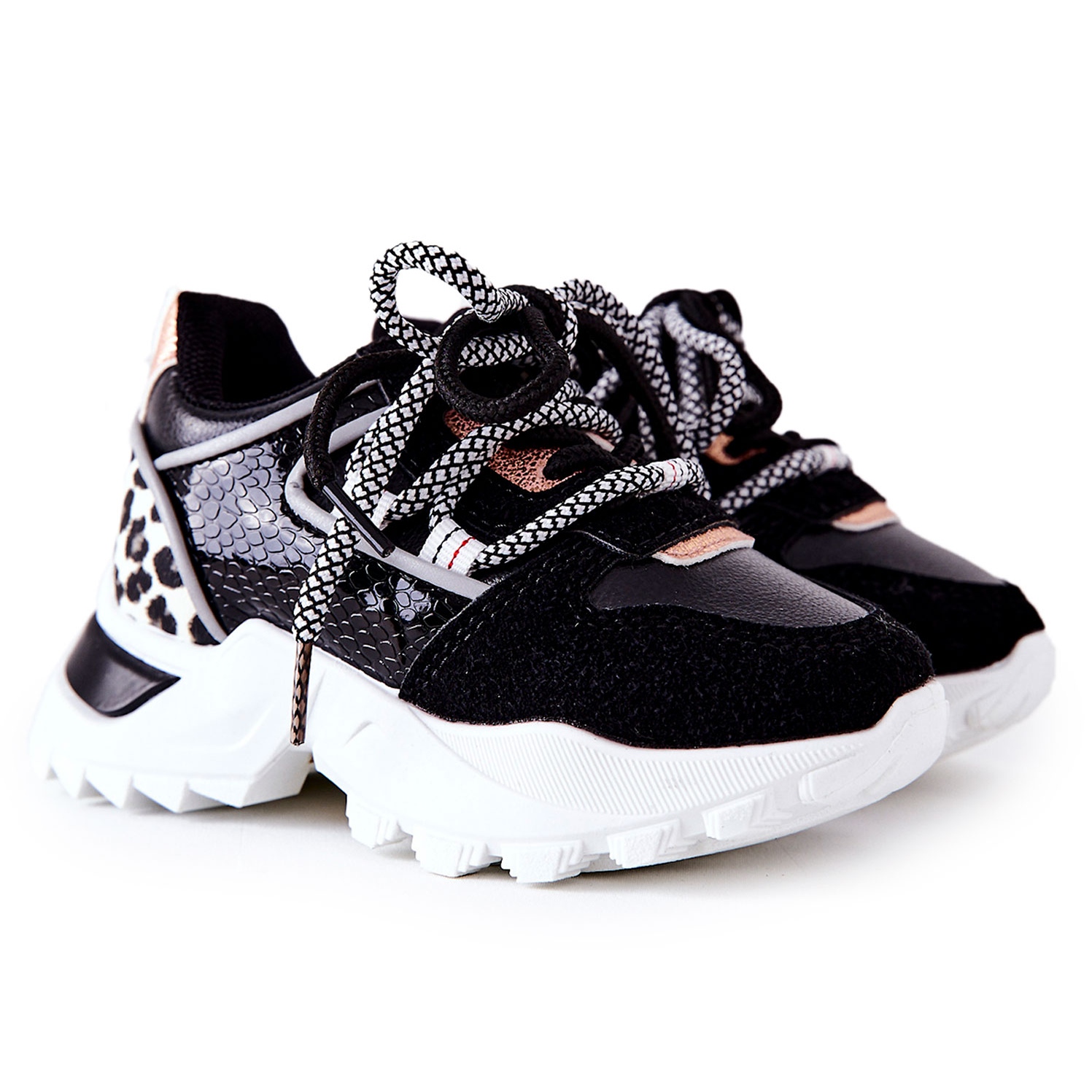 Upptäck de fantastiska FR1 Rommie sportsneakers för barn i svart med färgglada accenter! Dessa unika sneakers är ett måste för varje liten modeälskare. Deras unika mönster skiljer sig från andra modeller och ger stil och karaktär till vardagliga outfits.