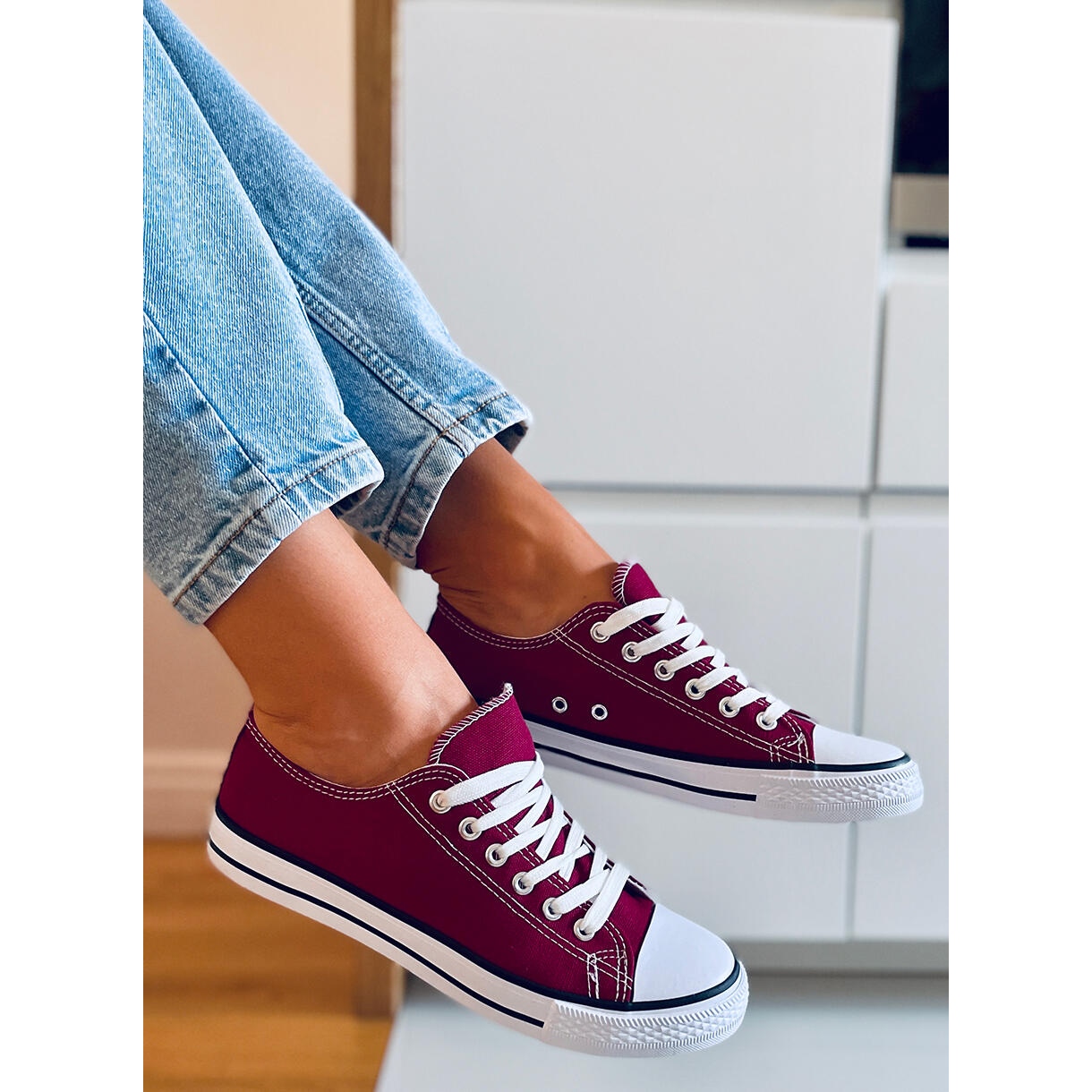 Klassiska Basic Wine damsneakers i rött är ett måste i garderoben för varje fashionabel kvinna! Dessa snygga skor med gummisula och karakteristiska passpoaler är en kombination av komfort och tidlös design. Tack vare den platta hälen är de perfekta för vardagsstyling och under träning.