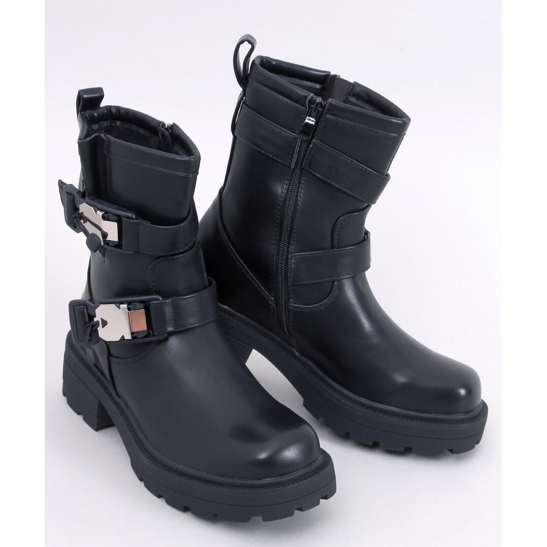 Beaus Blacks snygga kvinnors stövlar kombinerar en militär karaktär med daglig komfort. Tillverkad av ekologiskt (vänd) läder med skumfoder, med praktisk isolering och fäst med en blixtlås placerad på sidan av den övre. Dekorativa spännen lägger till en sten, militär slu och en rund näsa och en stabil klack som ett block (höjd 5 cm) säkerställer komforten att bära.