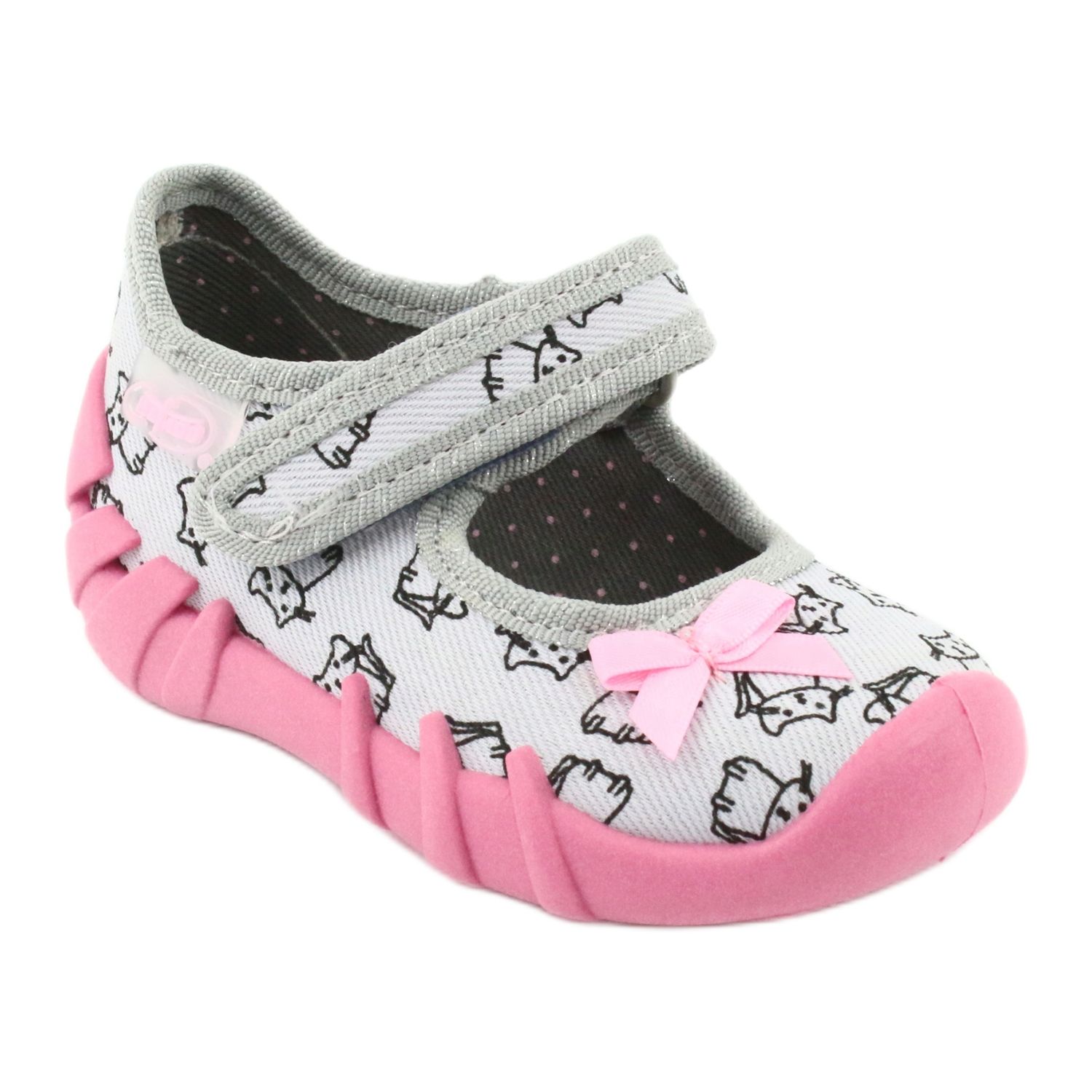 Upptäck Befado 109P198 barnskor i charmiga nyanser av rosa och grått, som kommer att glädja både föräldrar och små flickor. Denna modell av tofflor ger utmärkt stöd och komfort under vardagliga aktiviteter. Den breda tån på foten ger spädbarn utrymme, vilket gör dem bekväma när de leker och går.