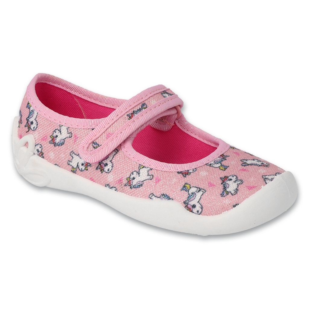 Barnens tofflor befado 114x534 i en vacker rosa färg är det perfekta valet för små flickor som värderar komfort och stil. Tillverkade av högkvalitativt tyg ger de inte bara komfort utan också tillförlitlighet och hållbarhet. Den styva hälen säkerställer fotens korrekta position, som uppskattades av specialister och markerade med "frisk fot" -skylt.