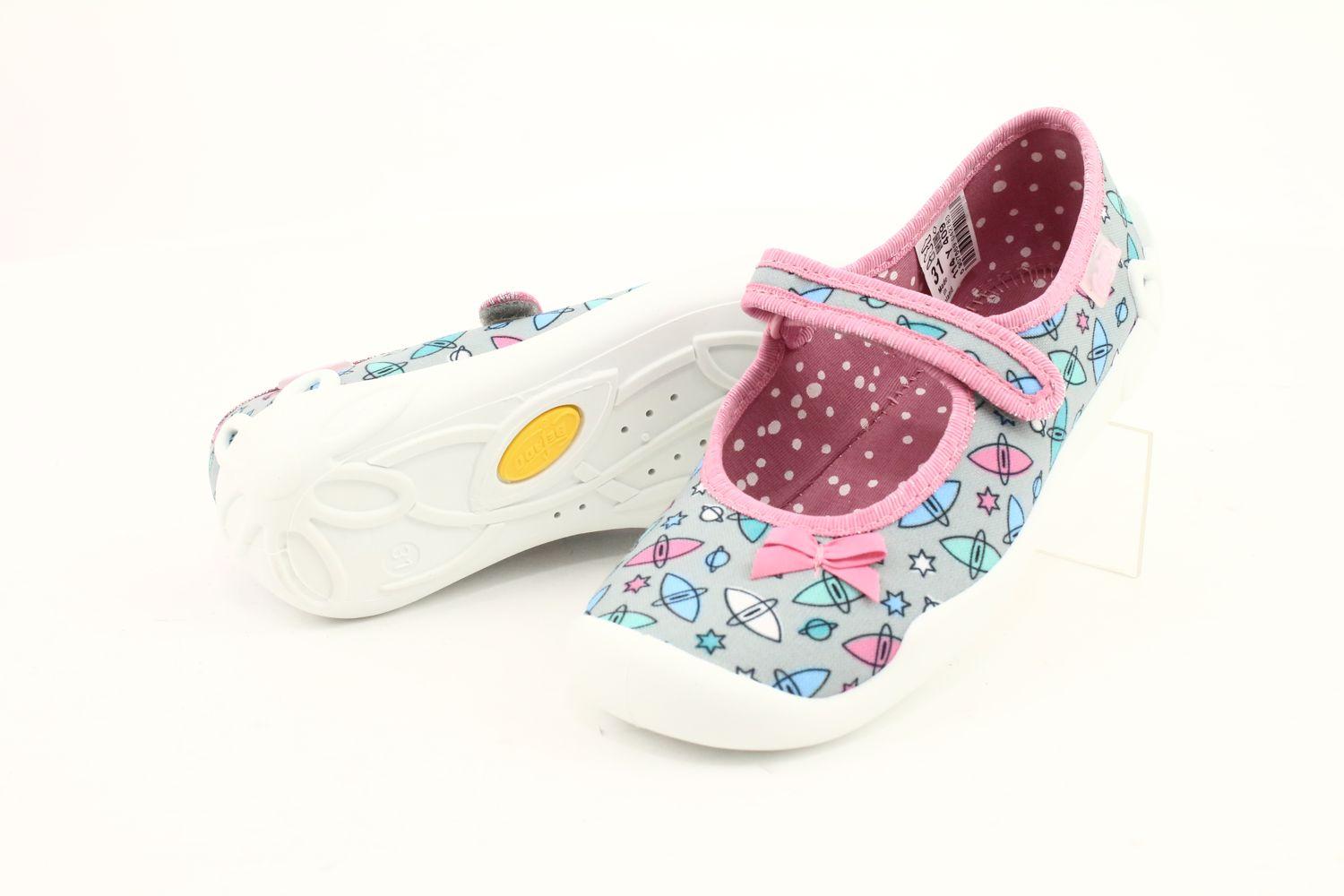 Befado 114Y409 designades med barns oberoende i åtanke. Tack vare en enkel kardborreknäppning kan barnet enkelt ta på och av skorna. Säkerheten spelar också en nyckelroll – dessa barntofflor har en styv häl och har fått ett erkännande i form av certifikatet "Healthy Foot Sign", som bekräftar deras ortopediska egenskaper.
