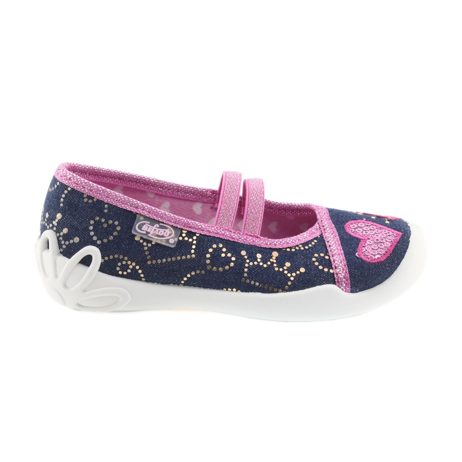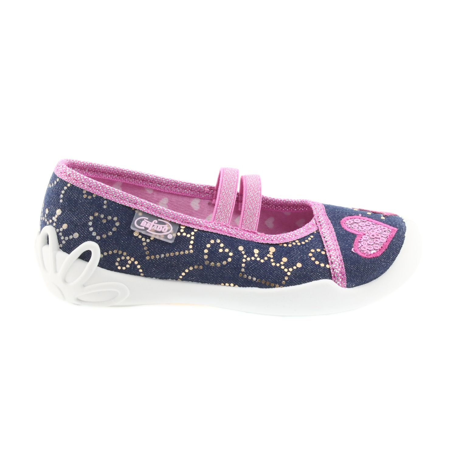 Överdelen på Befado skor är gjord av luftiga bomullstyger, vilket säkerställer utmärkt ventilation och komfort. Tack vare den flexibla och lätta sulan kan barn springa och hoppa fritt, och den upphöjda hälen och stabila sidorna håller effektivt fötterna i rätt position, vilket är särskilt viktigt i denna dynamiska utvecklingsperiod.