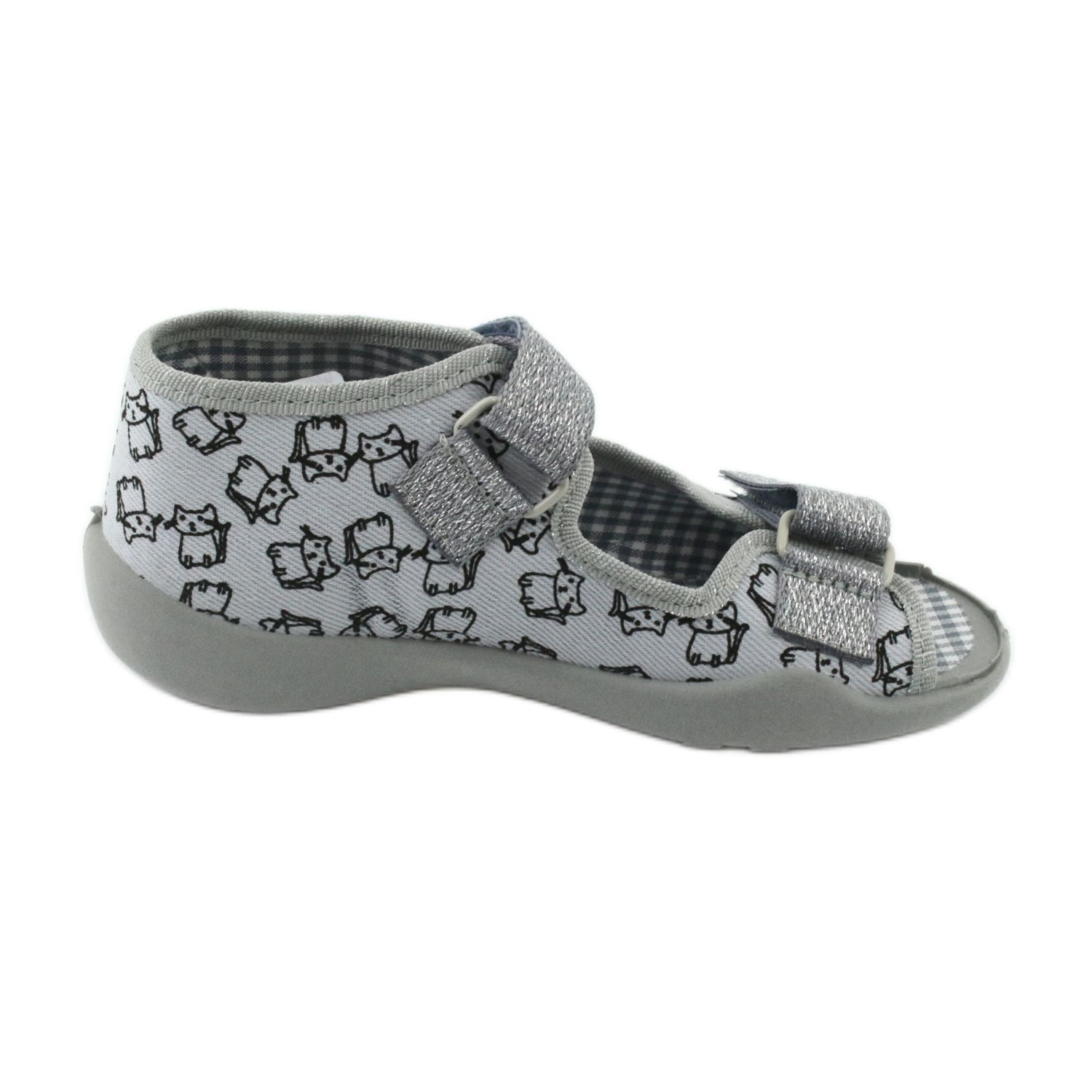 BEFADO SA 242P102 barnsandaler i grått är det perfekta valet för varje liten tjej som behöver bekväma och hälsosamma skor. En karakteristisk egenskap hos dessa sandaler är den uppbyggda hälen, som säkerställer stabilitet och komfort att bära. En flexibel sula som böjs på platser som rekommenderas av ortopeder stöder en korrekt utveckling av barnets fötter.