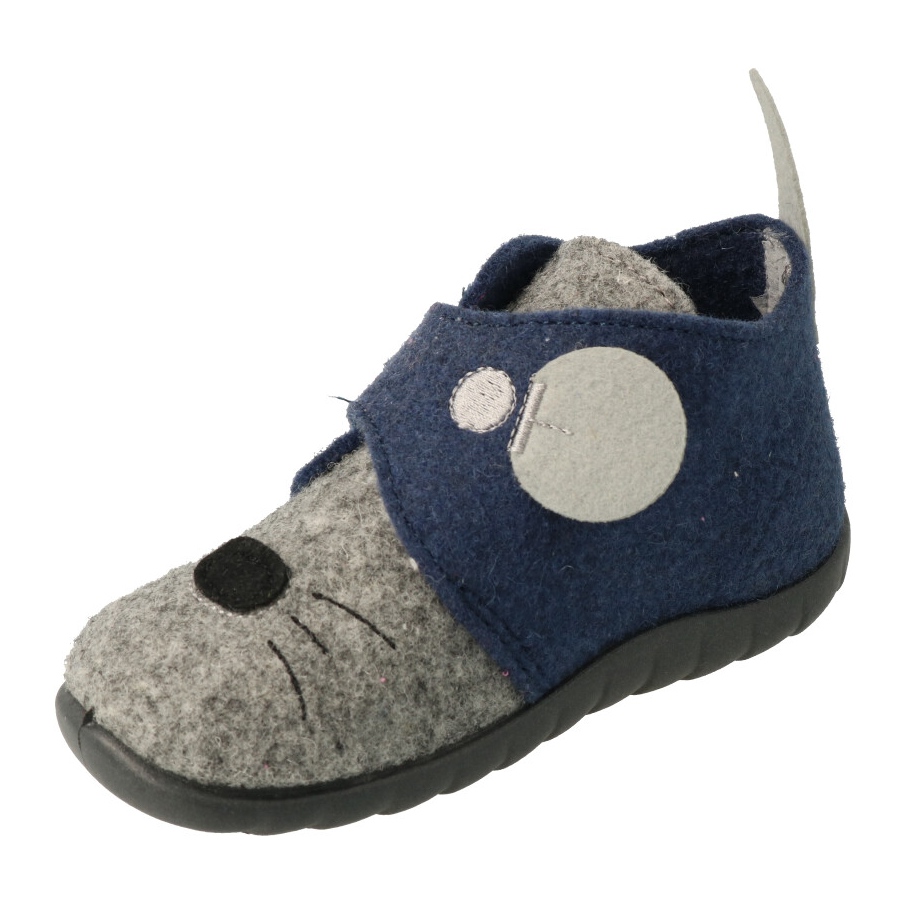 Befado 526P080-skon i marinblå och grå färger passar perfekt till de senaste trenderna inom barnmode, samtidigt som den erbjuder oöverträffad komfort och skydd för de ömtåliga fötterna hos barn som tar sina första, osäkra steg. Tillverkad av högkvalitativ filt, den är mjuk och bekväm, behaglig att ta på och hållbar. Varje detalj är omhändertagen så att barnets fötter mår bra i varje situation.