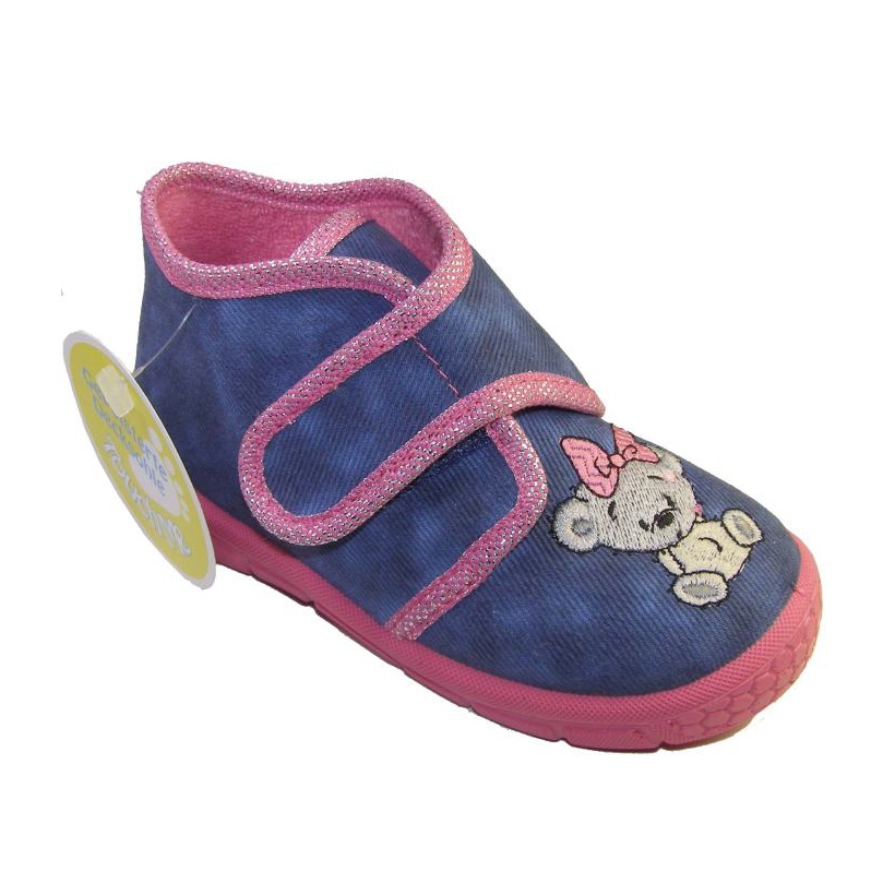 Färgerna på skorna, som kombinerar blått och rosa, gör dem mycket attraktiva för tjejer, och samtidigt praktiska i vardagsbruk. Healthy Foot-tecknet är en ytterligare garanti för hög kvalitet och uppmärksamhet på en korrekt utveckling av barns fötter.