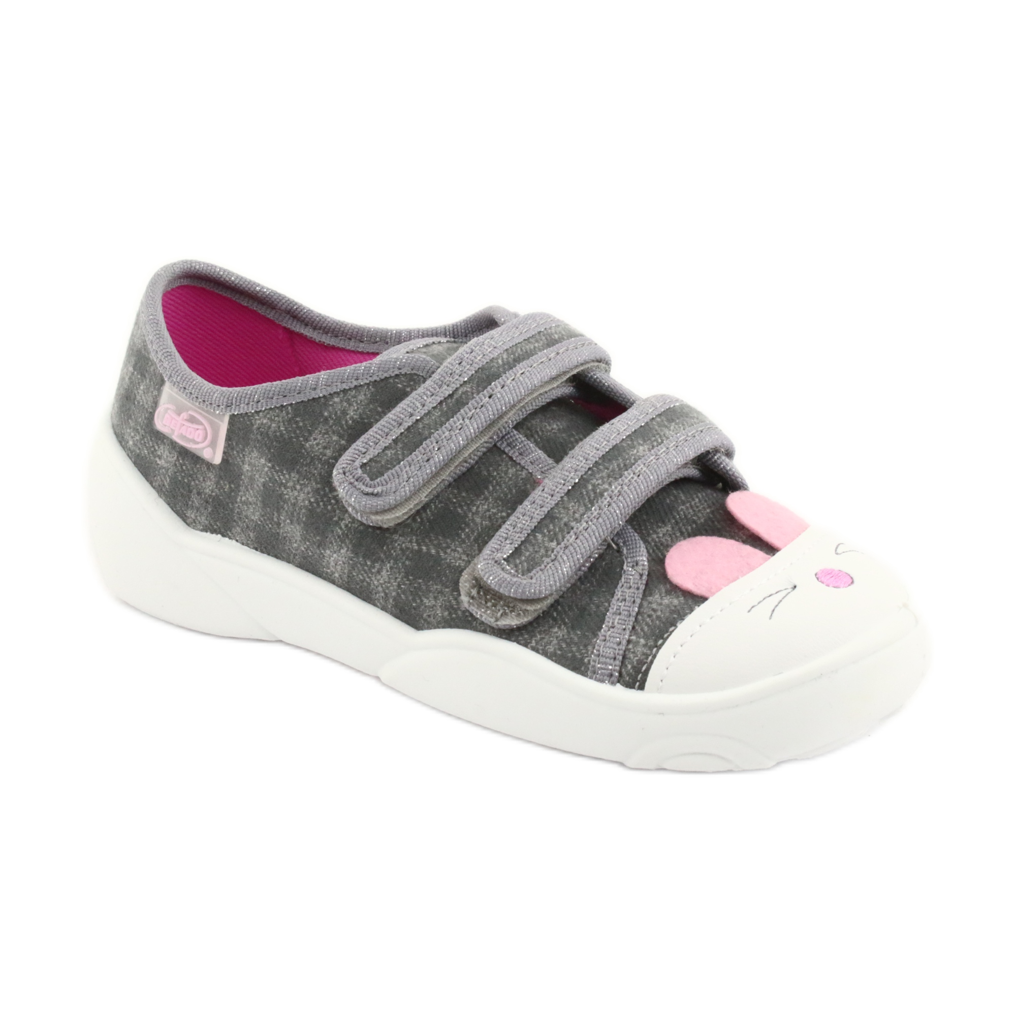 Befado barnskor 907P108 är perfekta sneakers för små tjejer som värdesätter komfort och moderiktigt utseende. I vackra nyanser av rosa och grått ser dessa skor unika ut, och deras fantasifulla kattmotiv på spetsarna kommer säkert att tilltala varje barn.