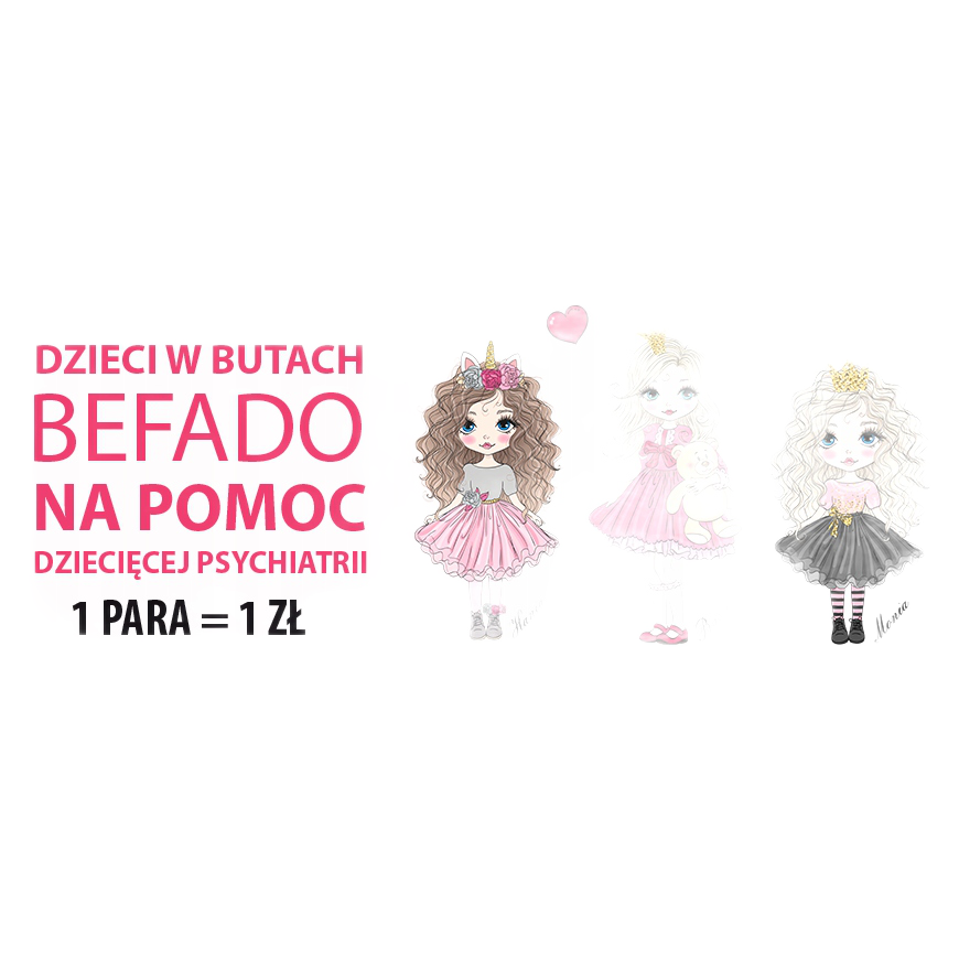 Befado Blanka barnskor i marinblått och silver är ett perfekt val för små prinsessor som vill kombinera komfort med en moderiktig look. En del av en begränsad samling utformad för att stödja barnpsykiatrin, varje köpt skor bidrar till att hjälpa barn i nöd - ett par är värt lika mycket som PLN 1 donerat till detta ädla ändamål.