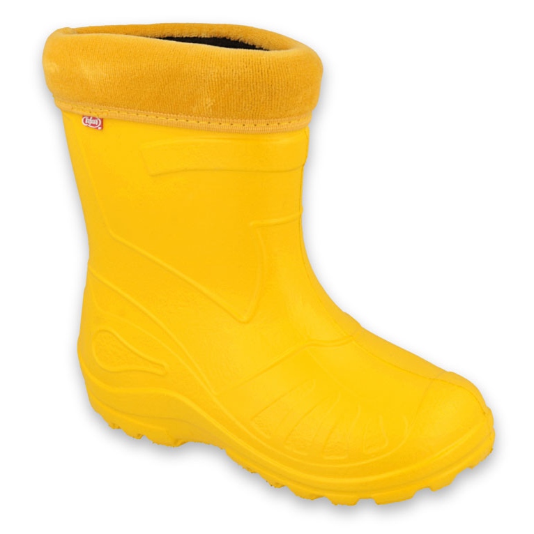Befado gula gummistövlar för barn (modell 162X107) är den perfekta lösningen för regniga dagar, vilket kommer att göra lek utomhus till ett sant nöje, oavsett väderförhållanden! Tillverkade av högkvalitativt EVA-material ger dessa lätta och flexibla skor exceptionell bärkomfort och utmärkt skydd mot fukt.