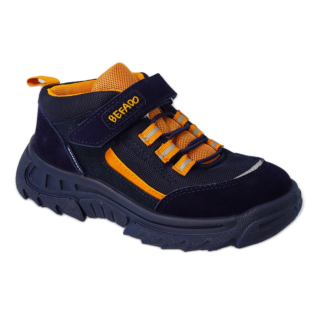 Upptäck de unika befado barnens skor i blått och orange (modell 515x003), som skapades för små upptäcktsresande och deras föräldrar! Dessa höga vandringsskor är det perfekta valet för aktiva pojkar som inte är rädda för utomhusäventyr, även på regniga dagar.