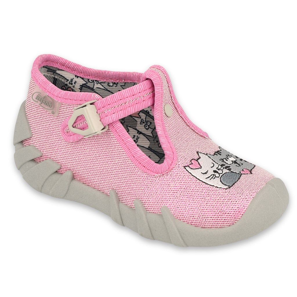 Befado tofflor är designade för tjejer och kännetecknas av många detaljer som säkerställer komfort och hälsosam utveckling av barnets fot. Speedy-modellen, designad med barns ergonomi i åtanke, har ett ankelspänne som håller skorna i rätt position, vilket säkerställer en stabil gång. Den bredare tån ger utrymme för rörliga fingrar, vilket är viktigt för den korrekta kinetiken hos barnets fot. Tofflorna har ventilerande sulor som hjälper till att minska svett i foten.