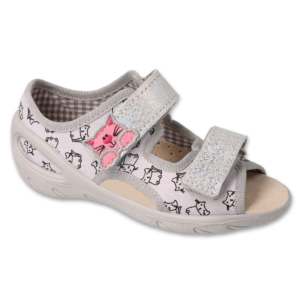Tack vare kardborrstängningen går det enkelt och snabbt att ta på och av skorna, vilket är viktigt för små barn som lär sig självständighet. Den grå färgen med delikata silveraccenter gör att tofflorna går bra med många stilar, som varje tjej säkert kommer att gilla.