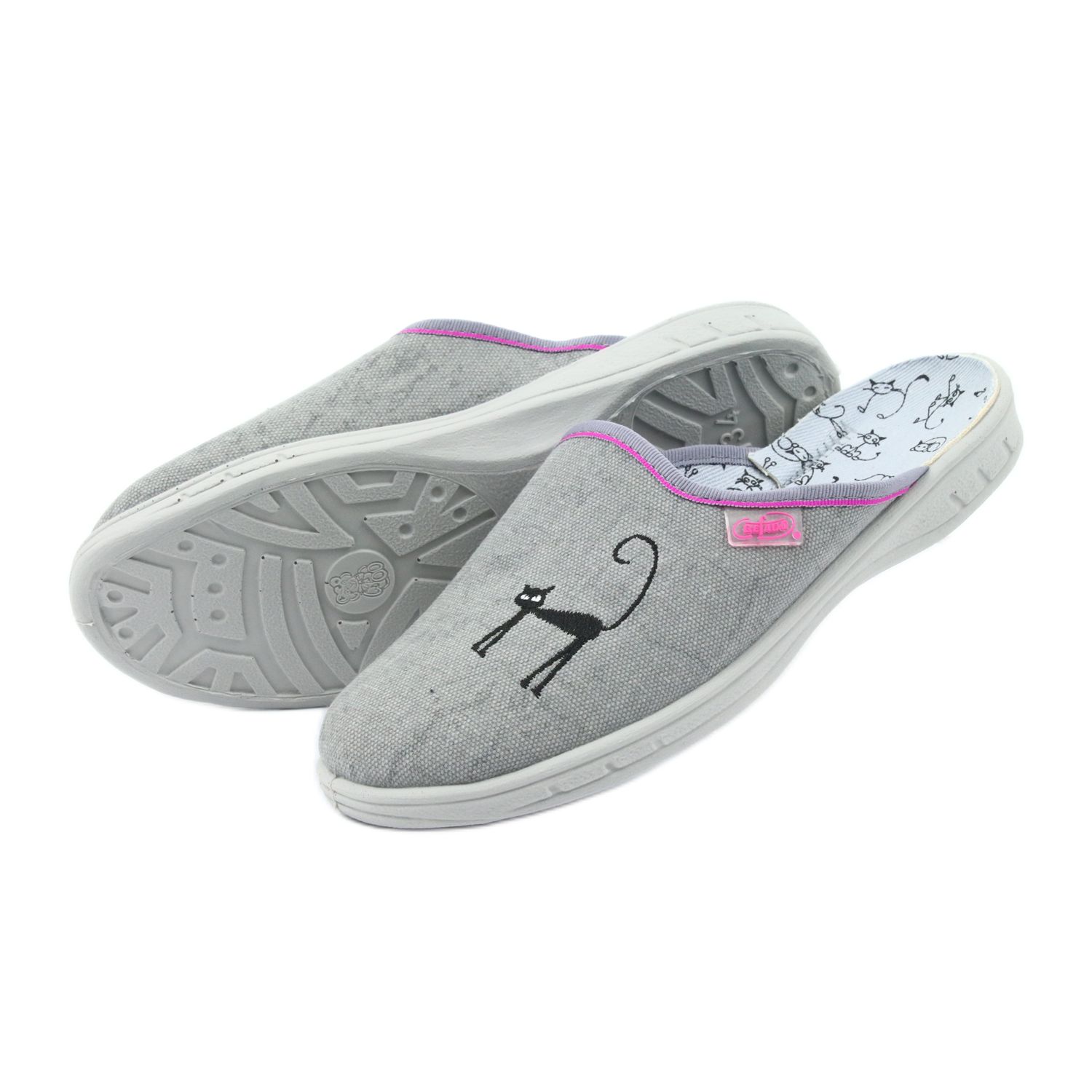 Befado barnskor, tofflor, flipflops 707Y398 i grått är ett perfekt val för små skönheter. Dessa bedårande tofflor med en svart kattapplikation kombinerar moderiktig design med funktionalitet, vilket gör dem till perfekta skor för skolan och hemmet. Tillverkade av högkvalitativa tyger ger de komfort och hållbarhet för långa timmars användning.