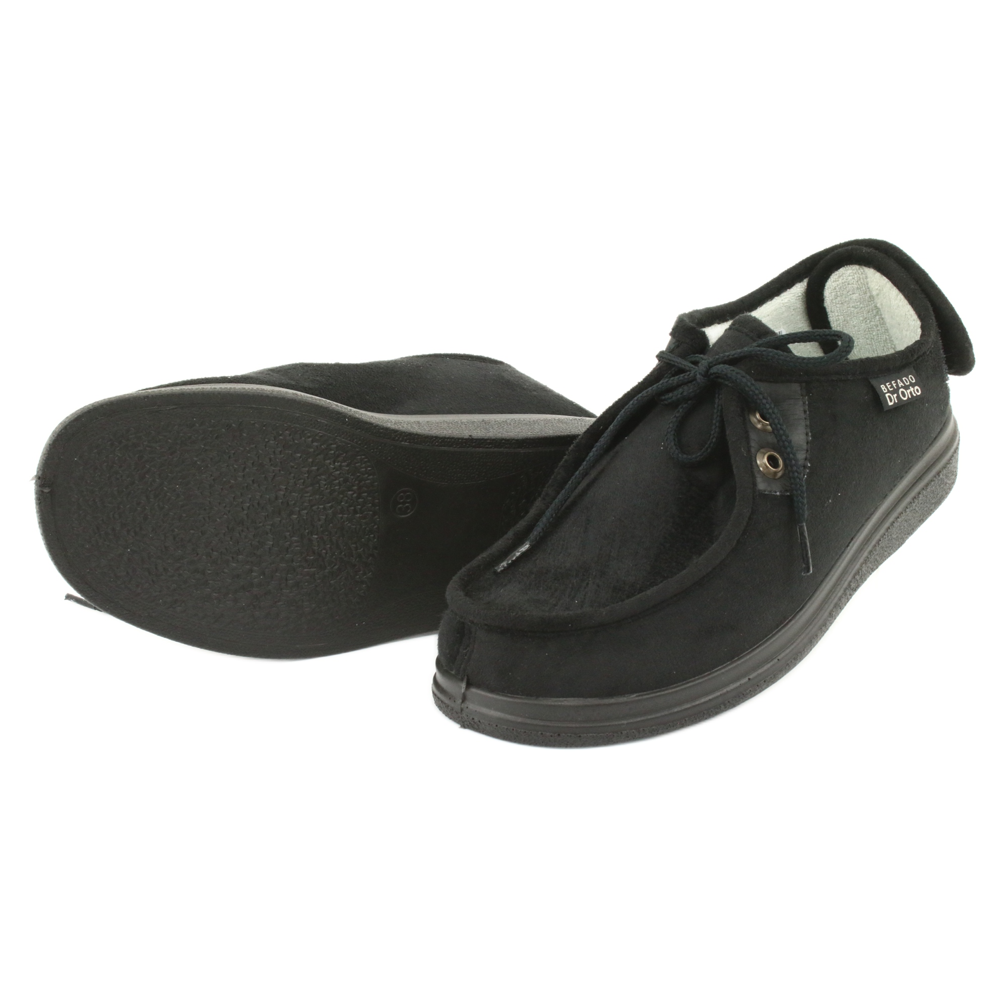 Upptäck de unika Befado PU 387D005 damskorna i en elegant svart färg, som perfekt möter behoven hos personer med känsliga fötter, inklusive diabetiska fötter. Dessa tofflor kombinerar komfort och funktionalitet tack vare användningen av högkvalitativa skummaterial och ett minimerat antal stygn, vilket garanterar delikatess och komfort att bära.