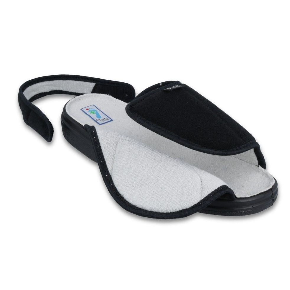 Befado PU 983D004 damskor i svart är det perfekta valet för sommarsäsongen. Dess flexibla och lätta design gör den lätt att anpassa till fotens form tack vare den praktiska kardborreknäppningen. Det är mycket populärt inte bara som klänningsskor, utan också som bekväma tofflor för hemmabruk.