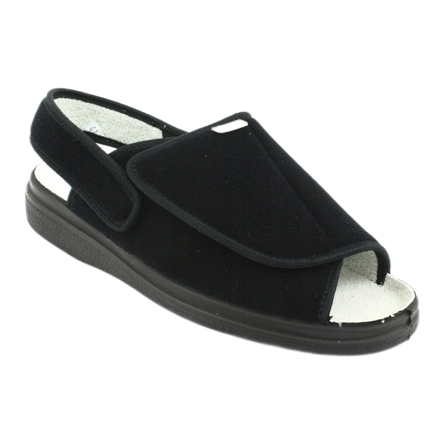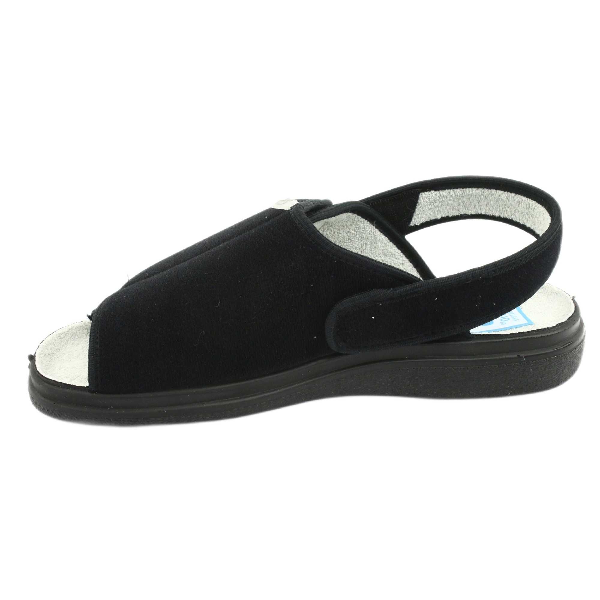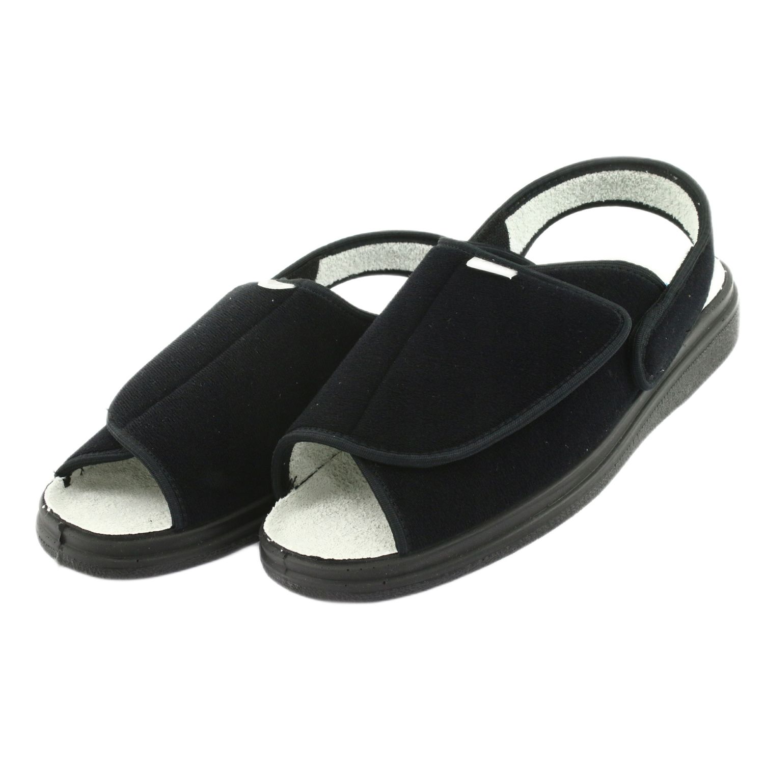Vi presenterar eleganta, smidiga och lätta Befado 983D004 damskor i en klassisk svart färg. Tack vare den innovativa kardborreknäppningen anpassar sig skorna perfekt till fotens form, vilket gör dem bekväma för alla tillfällen. Perfekt för sommarsäsongen som dress-skor, de kan även användas som bekväma tofflor hemma.