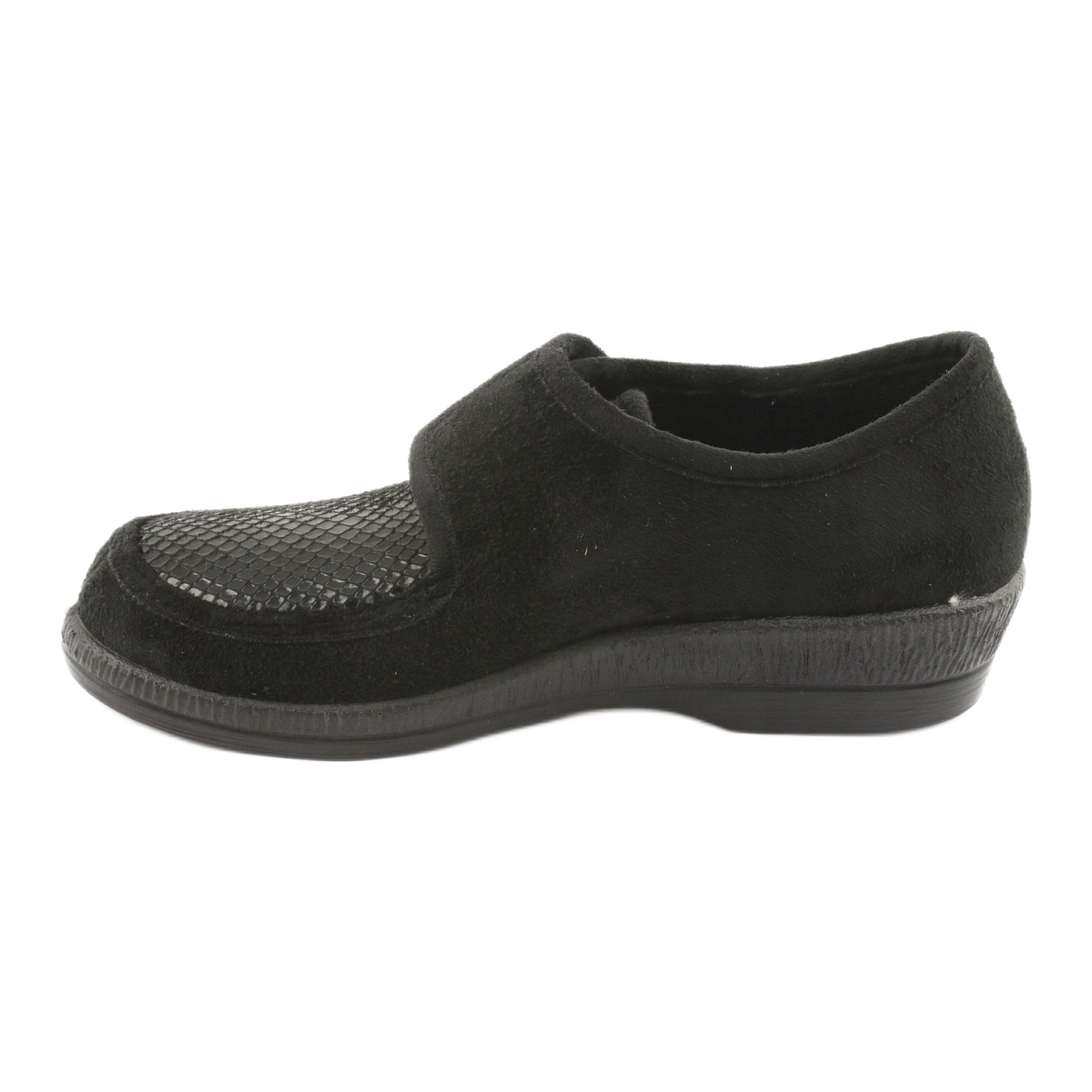 Bekväma och praktiska kvinnors skor designade för daglig användning hemma och utanför. Den elastiska övre delen av stretchmaterial anpassar sig till fotens form, vilket gör modellen idealisk också för personer med en diabetisk fot eller benägen till mindre deformation.