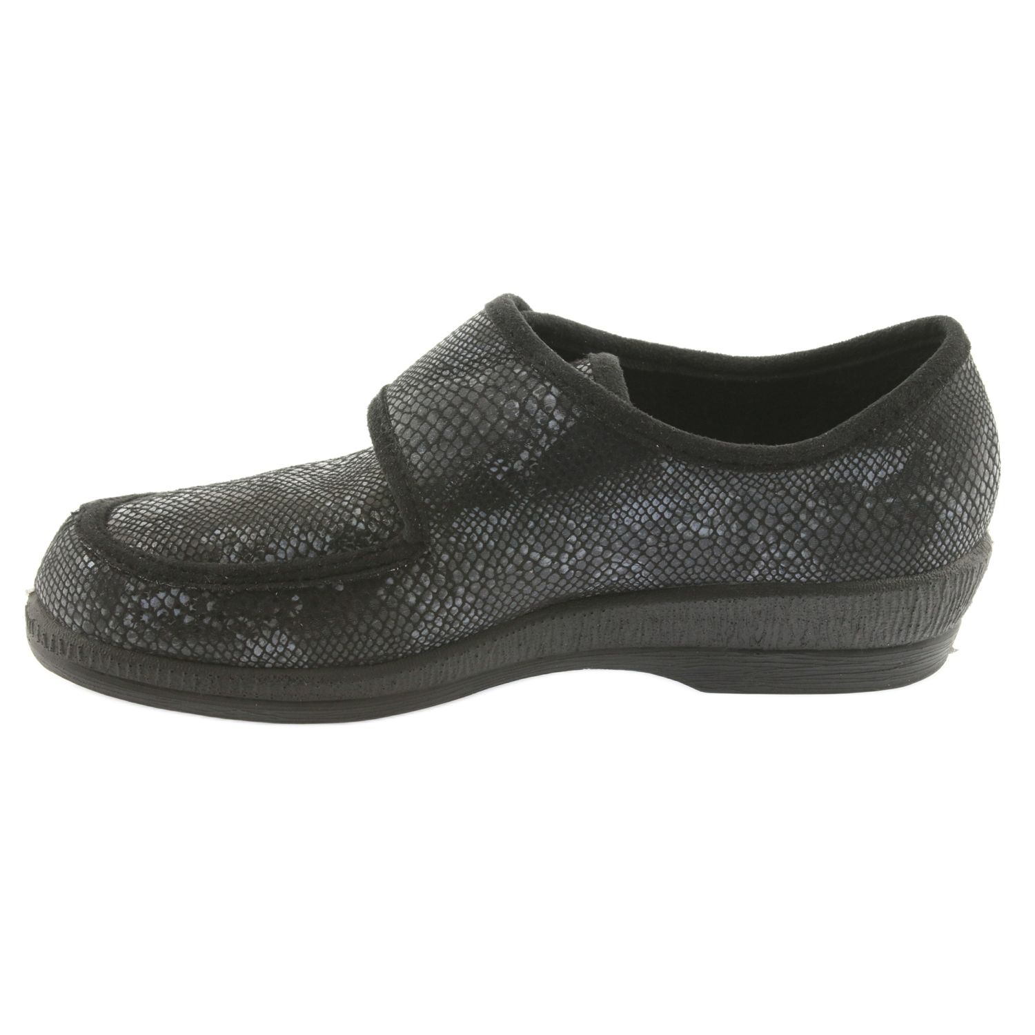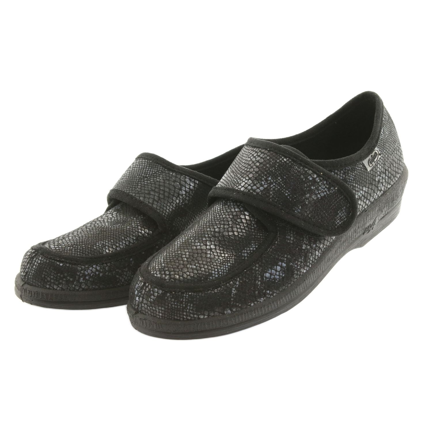 Upptäck komfort och stil med Befado 984D016 damskor i svart med grå accent! Det är en idealisk lösning både för att koppla av hemma och för en promenad utomhus. Ovandeln är tillverkad av flexibelt material och anpassar sig lätt till fotens form, vilket gör skorna exceptionellt bekväma, även för personer med ortopediska problem, inklusive diabetisk fot.