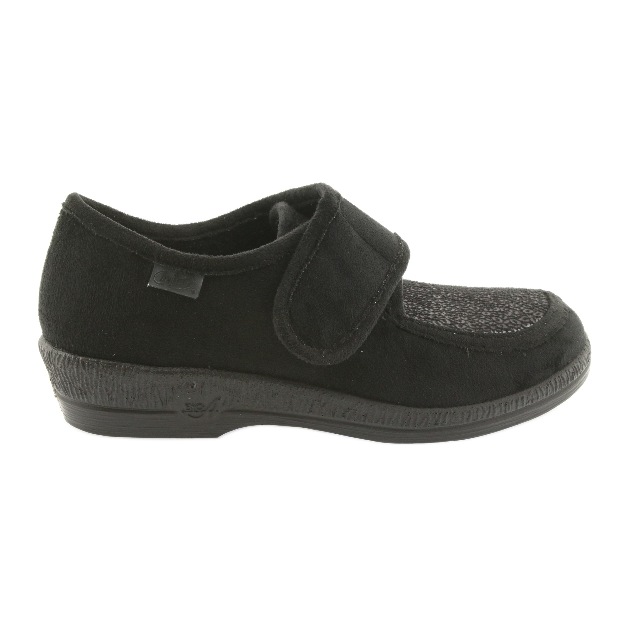 Vi presenterar bekväma och bekväma Befado 984D017 damskor i en elegant svart färg. Dessa tofflor har noggrant designats för dagligt bruk både inomhus och utomhus. Ovandeln i ett flexibelt och töjbart material anpassar sig perfekt till fotens form, vilket kommer att uppskattas särskilt av personer med missbildningar eller hälsoproblem.