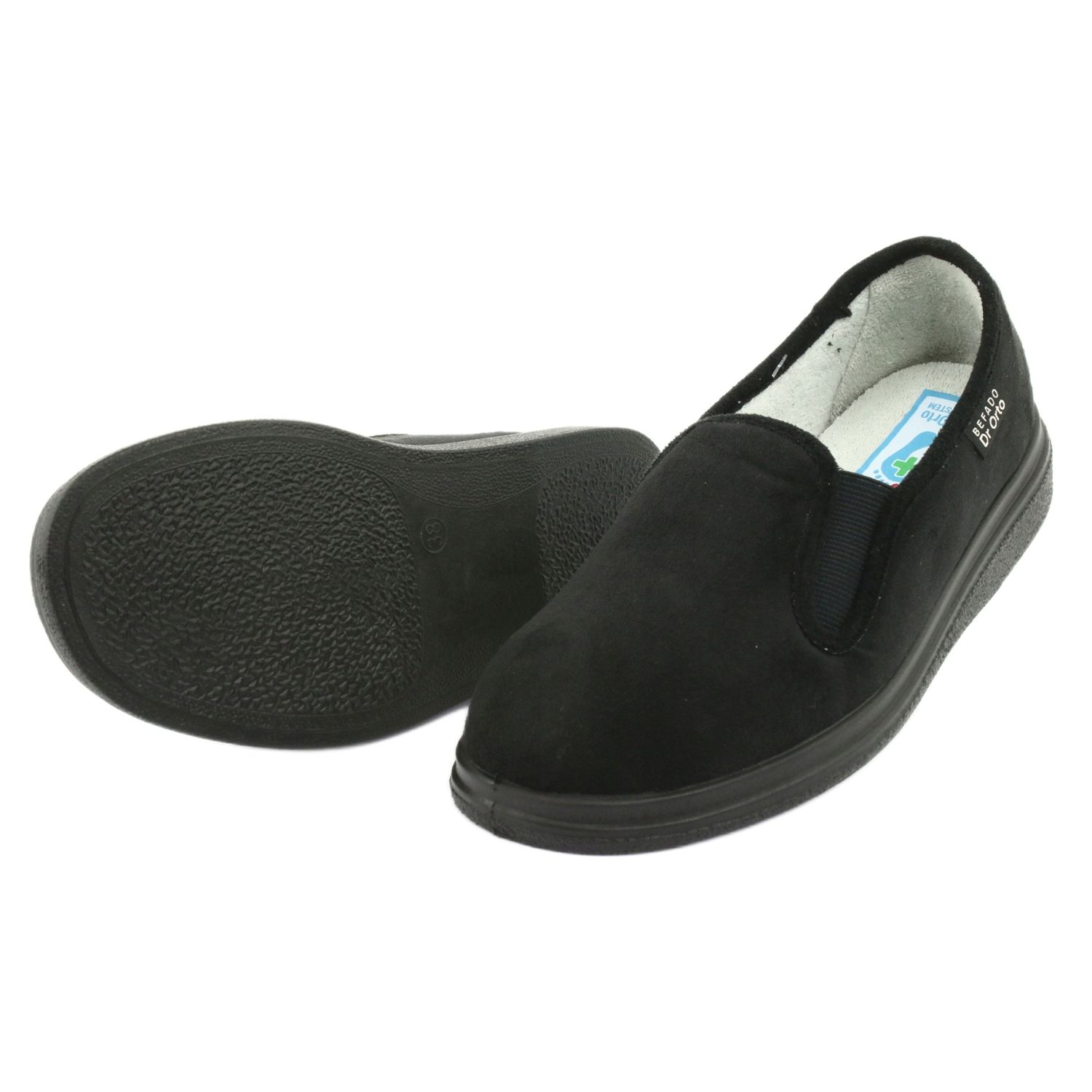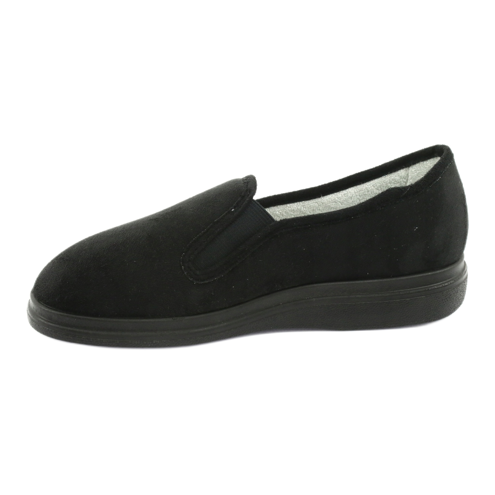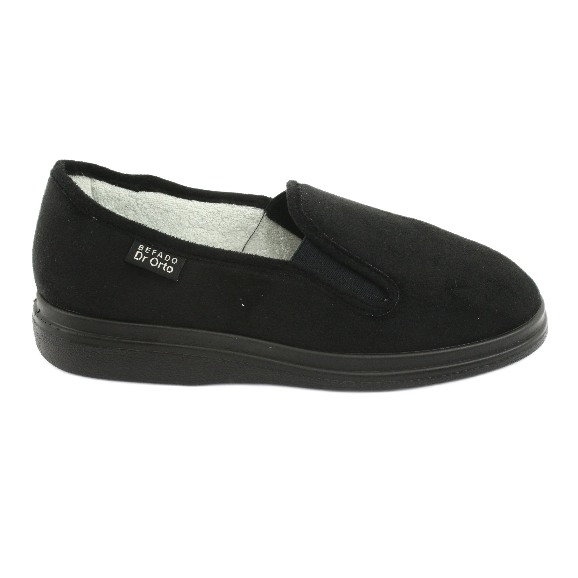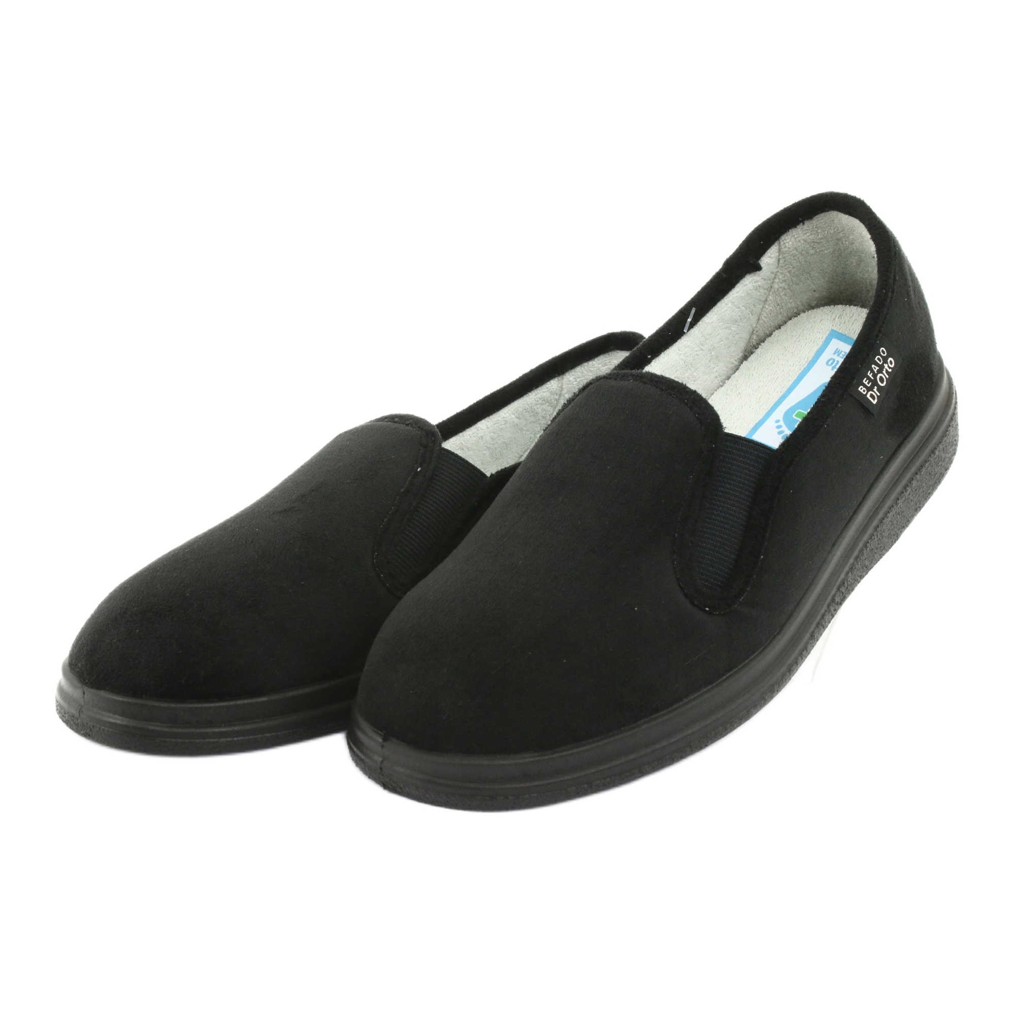 BEFADO 991D002 - Lätt, bekväma kvinnors tofflor i svart, skapade för känslig och kräver maximal komfort. Modellen med hög fett ger en bred och hög näsa, tack vare vilken fingrarna är fritt ordnade, och skoren komprimeras inte ens med svullande fötter. Antalet sömmar och leder inuti skon har minimerats, vilket minskar risken för skador och irritation - en lösning som också rekommenderas för personer med diabetisk fot.