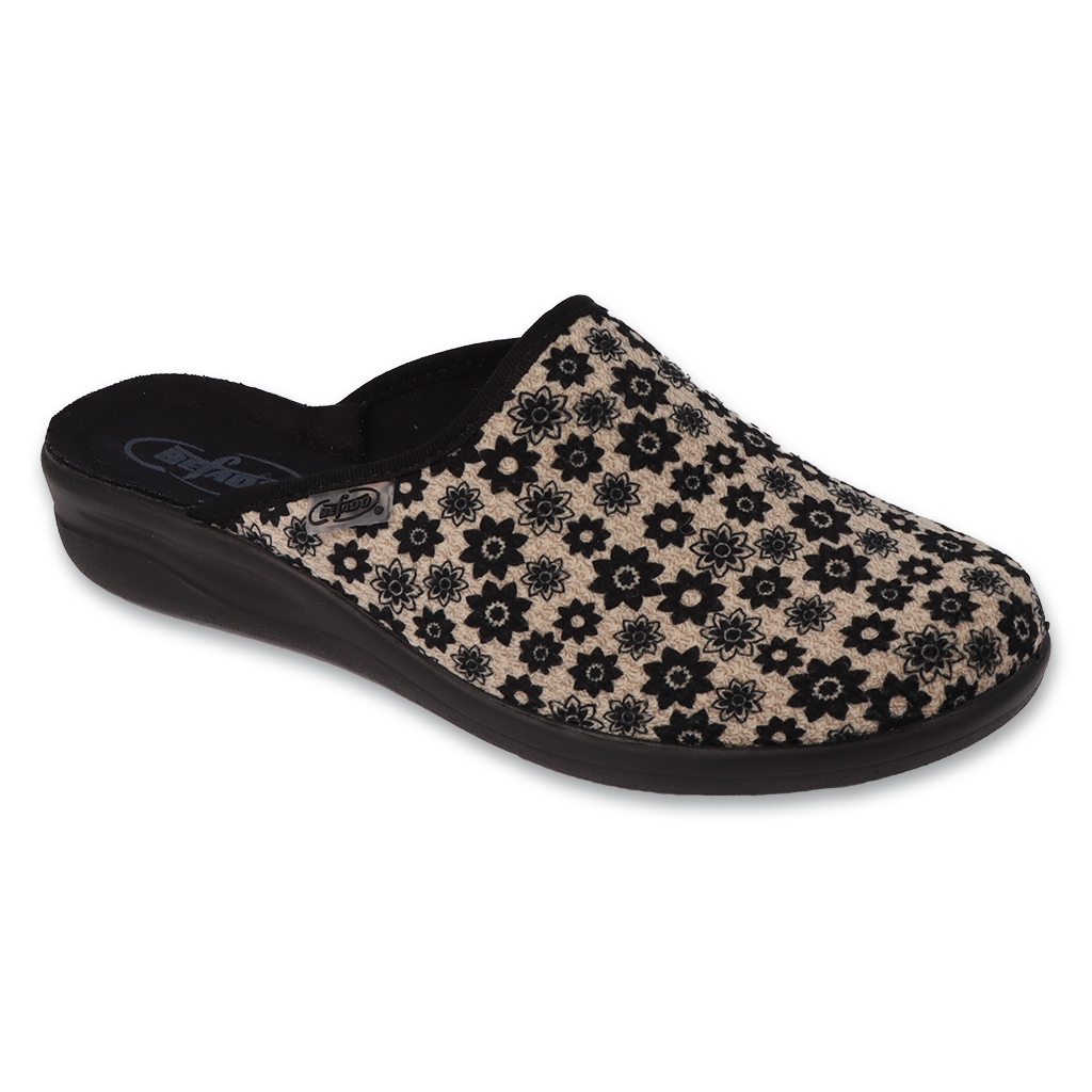 Detaljer: Befado damtofflor med blommor, pu 551D002, beige/svart